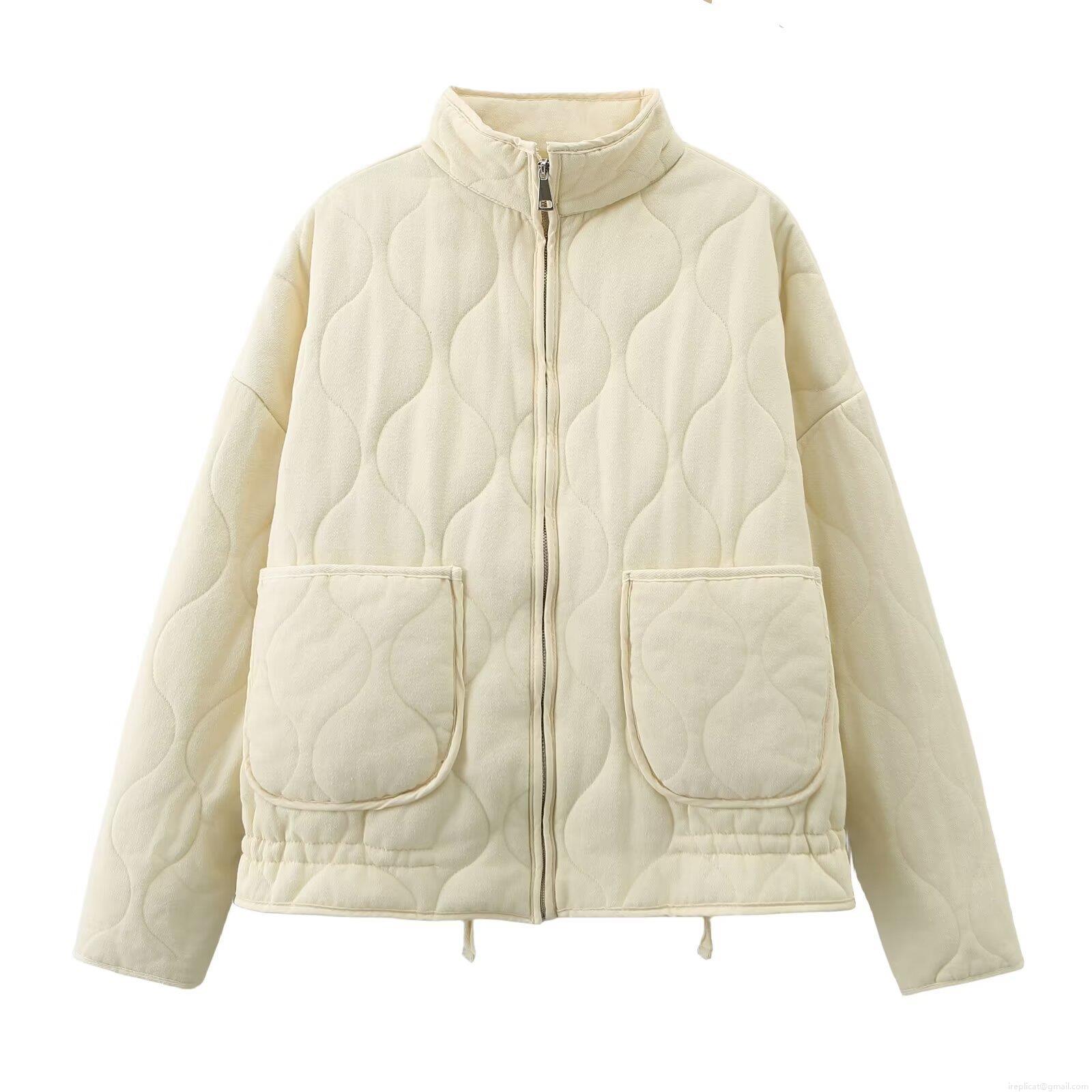 • Women Quilted Puffer Jacket Cotton Blend Stand Collar Zip Up Outerwear With Big Pockets Casual Warm Lightweight Coat For Fall Winter
