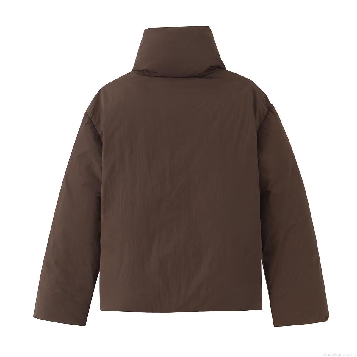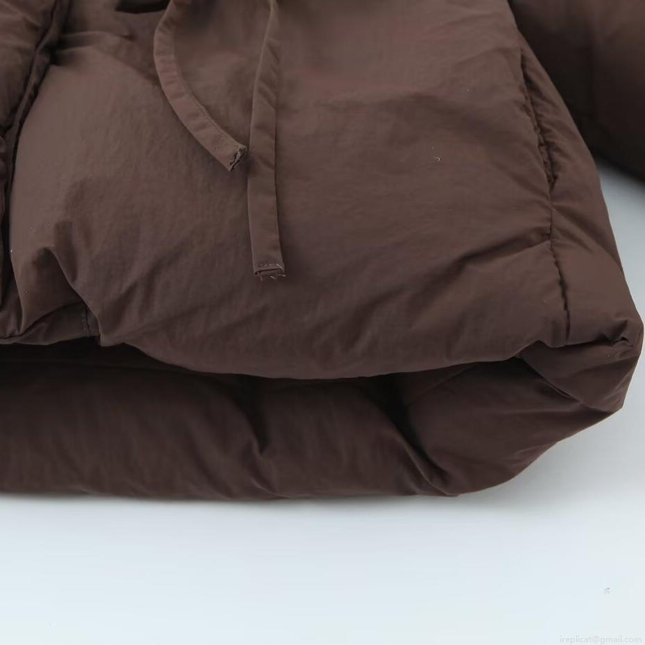• Women Short Padded Jacket Winter Warm Stand Collar Puffer Coat With Waist Tie Casual Solid Coffee Brown Long Sleeve Windproof Outerwear Jacket