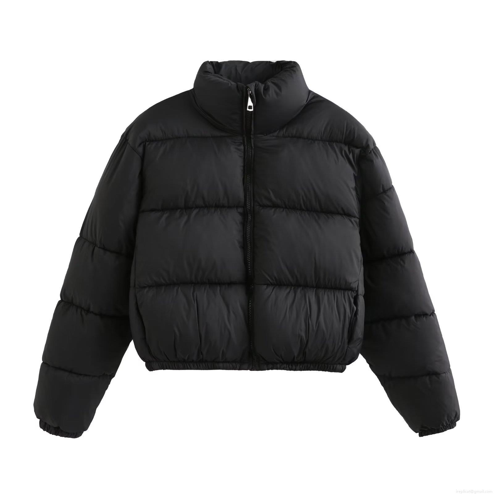 Women Short Puffer Jacket Stand Collar Quilted Polyester Down Cotton Winter Padded Coat Casual Y2K Streetwear Long Sleeve Zipper Bread Jacket Warm Outerwear