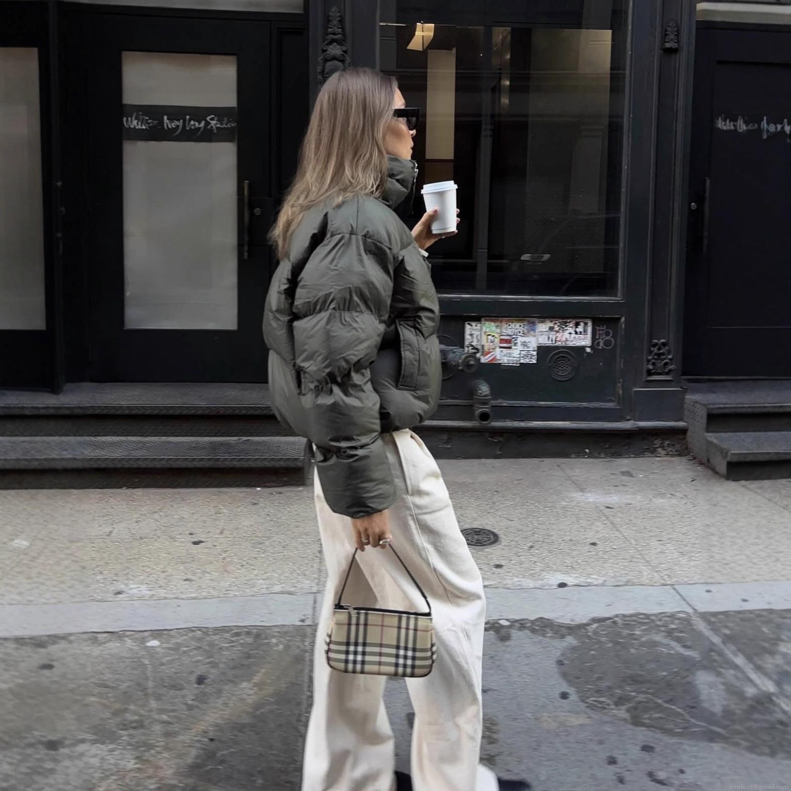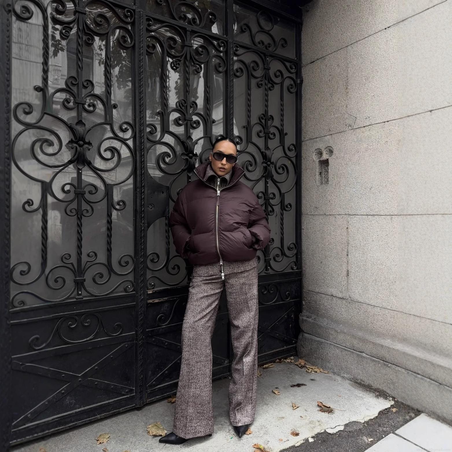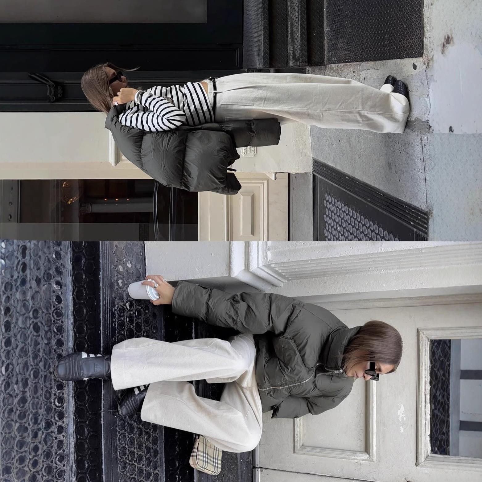 • Women Stand Collar Puffer Jacket Oversized Quilted Cotton Padded Coat Short Casual Loose Winter Warm Outerwear For Ladies