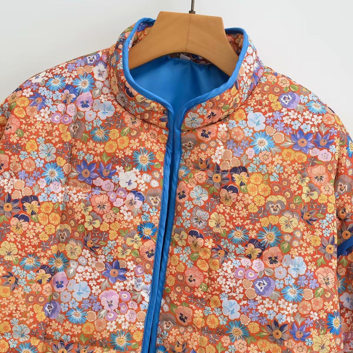 Floral Pattern, Quilting, Stand-up Collar, Contrasting Edging, Sticker Bag