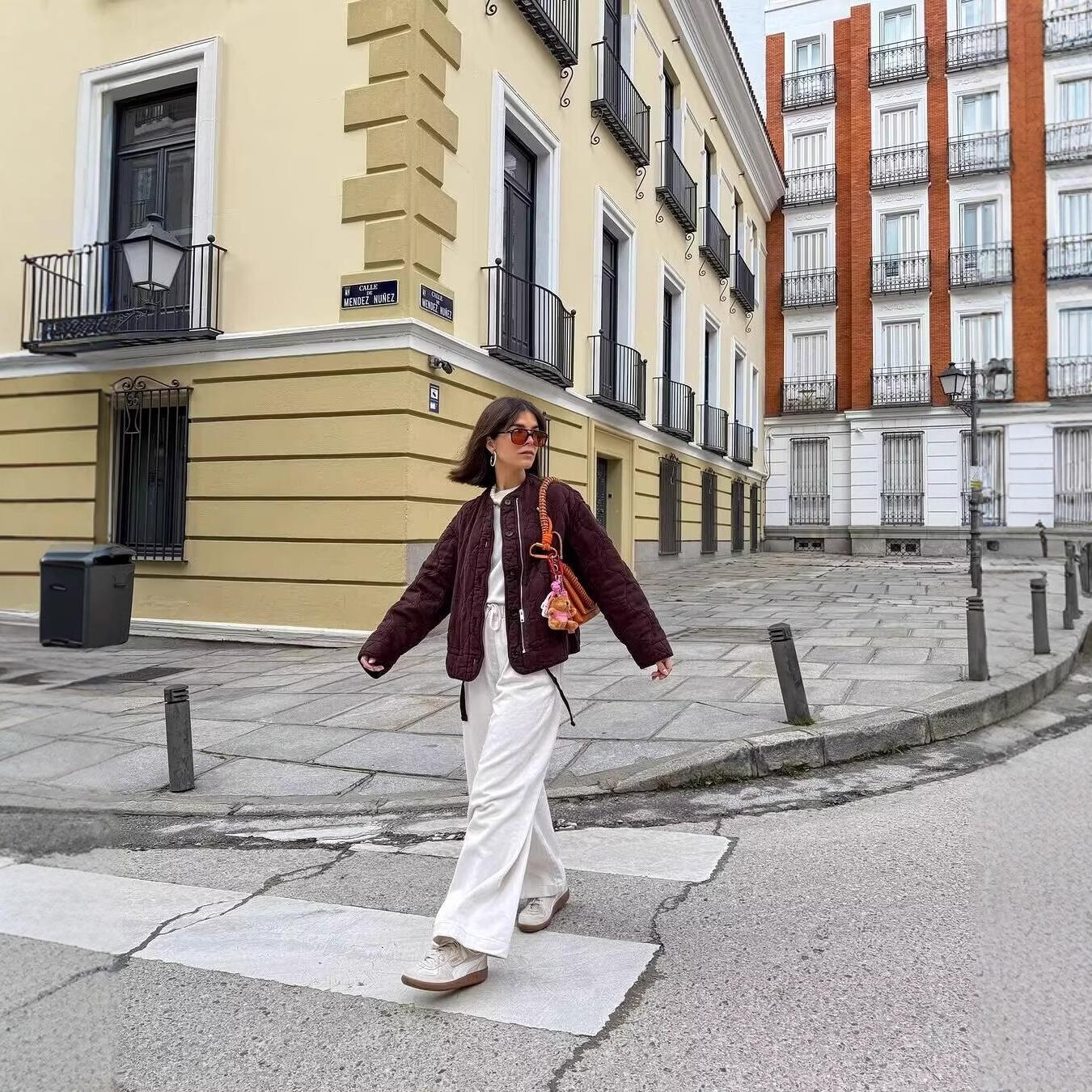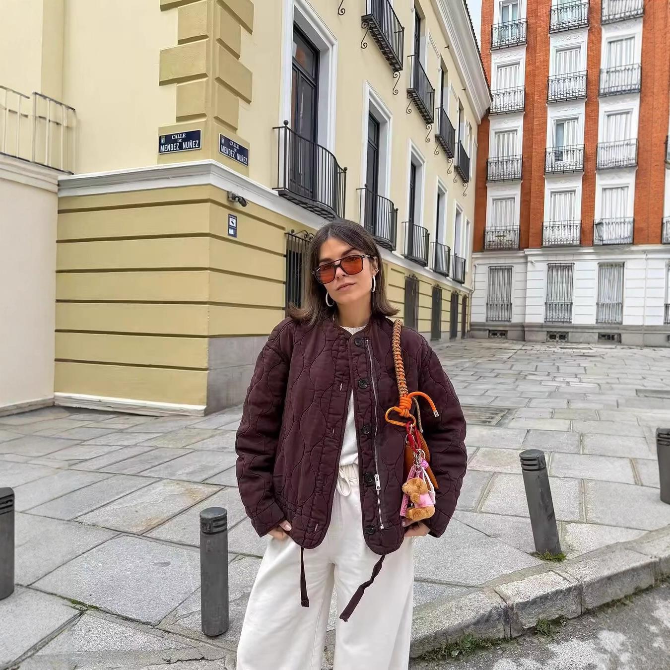 • Women Vintage Quilted Jacket 100% Polyester Lightweight Padded Coat With Zipper Button Closure Streetwear Round Neck Warm Outerwear For Autumn Winter Ladies