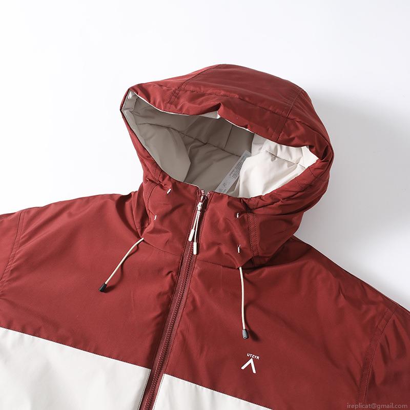 Pocket, Color Blocking, Zipper, Hood
