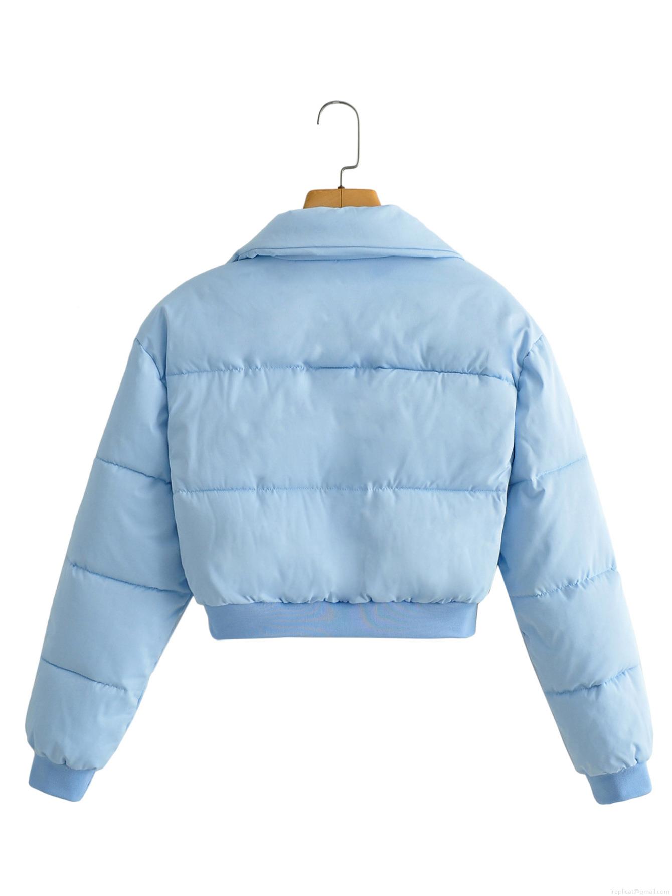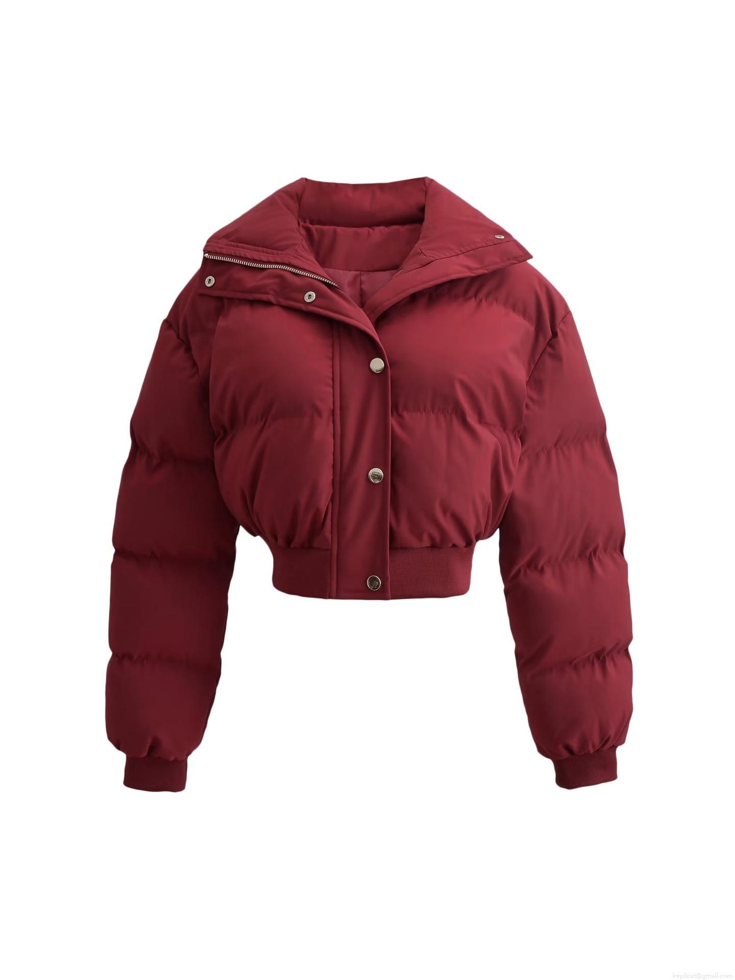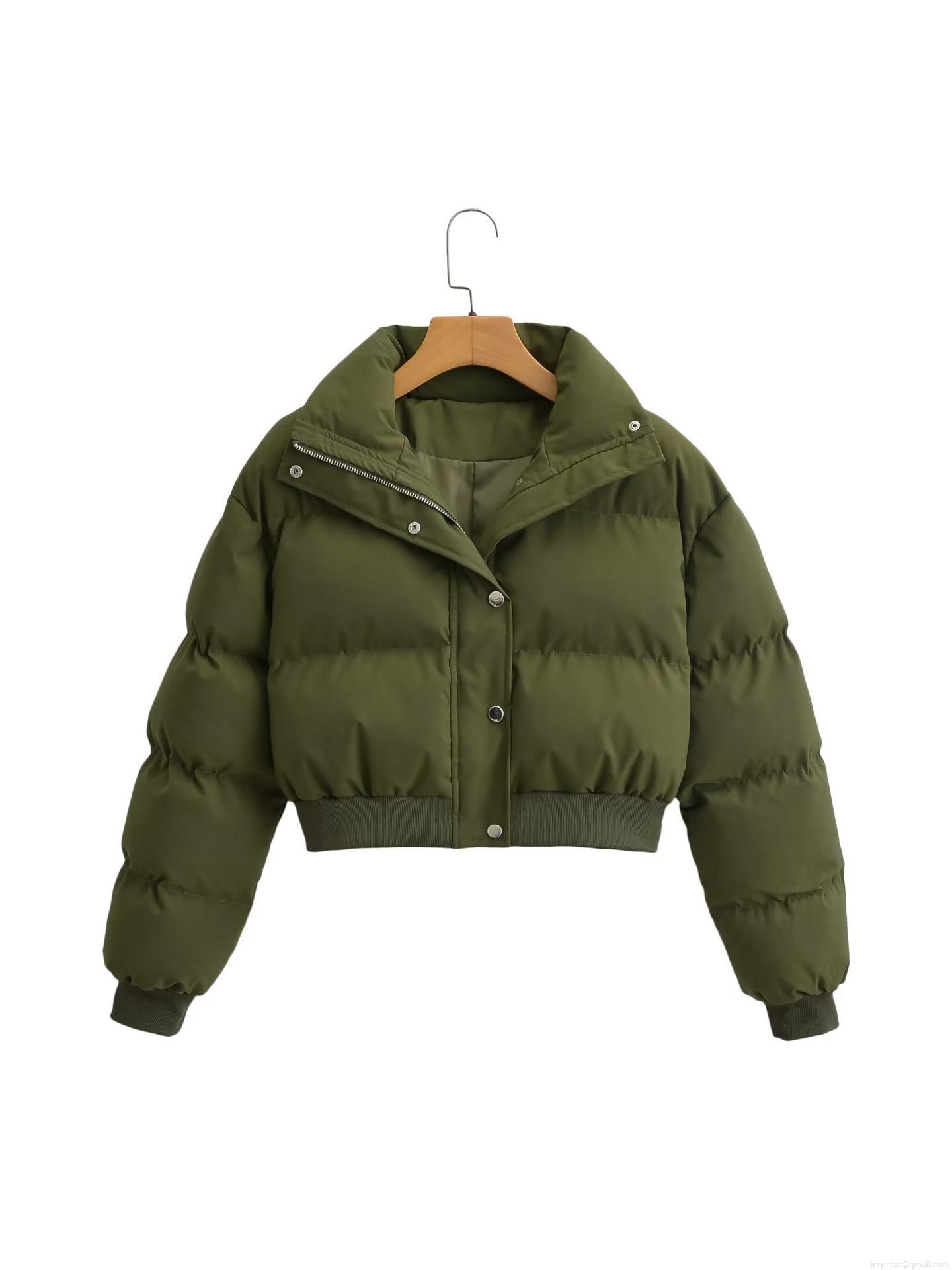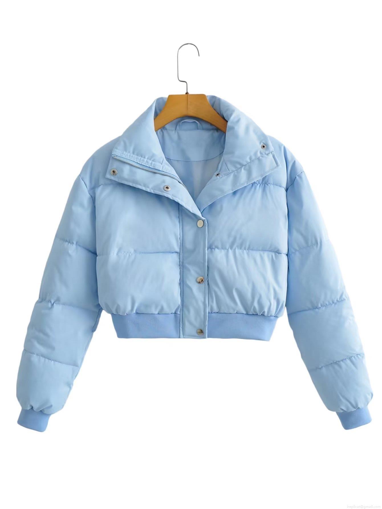 • Women Winter Short Puffer Jacket Polyester Padded Coat Stand Collar Single-Breasted Zipper Quilted Outerwear Warm Windproof Bread Jacket For Ladies
