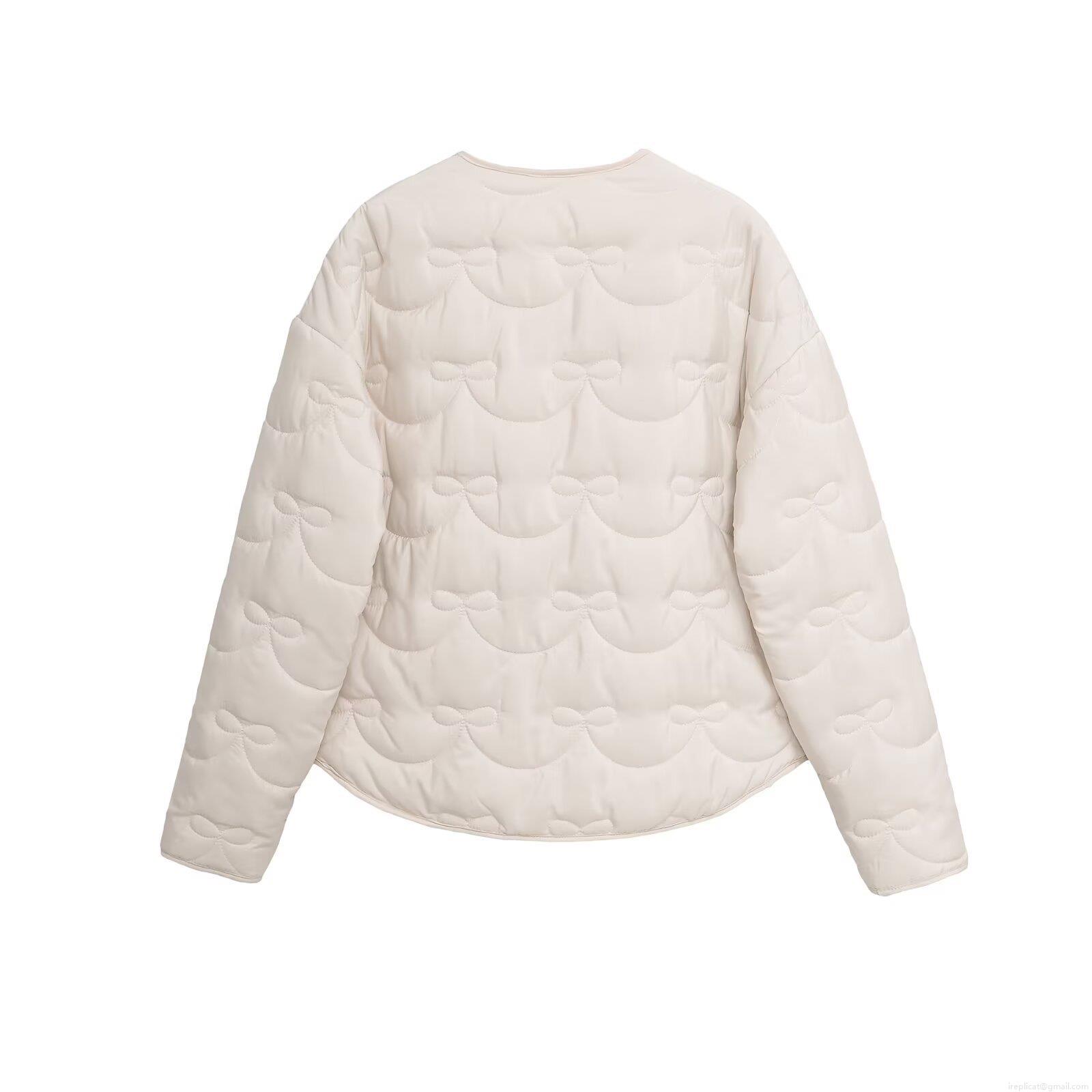 • Women's Bow Quilted Lightweight Jacket Round Neck Single Breasted Cotton Polyester Blend Puffer Coat Casual Fall Winter Outerwear