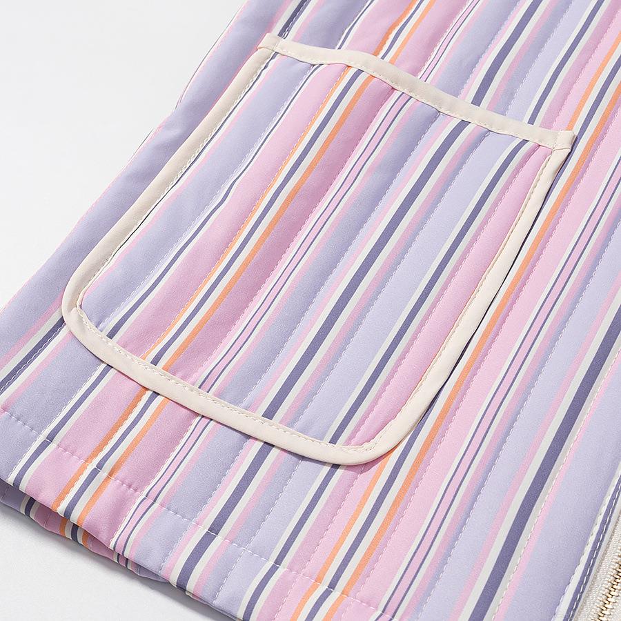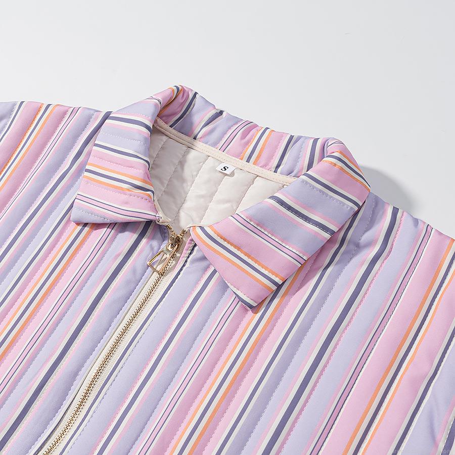 • Women's Casual Colorful Striped Quilted Jacket Padded Puffer Coat With Gold Zipper Pockets Polyester Spandex Blend Loose Fit Autumn Winter Outerwear For Women