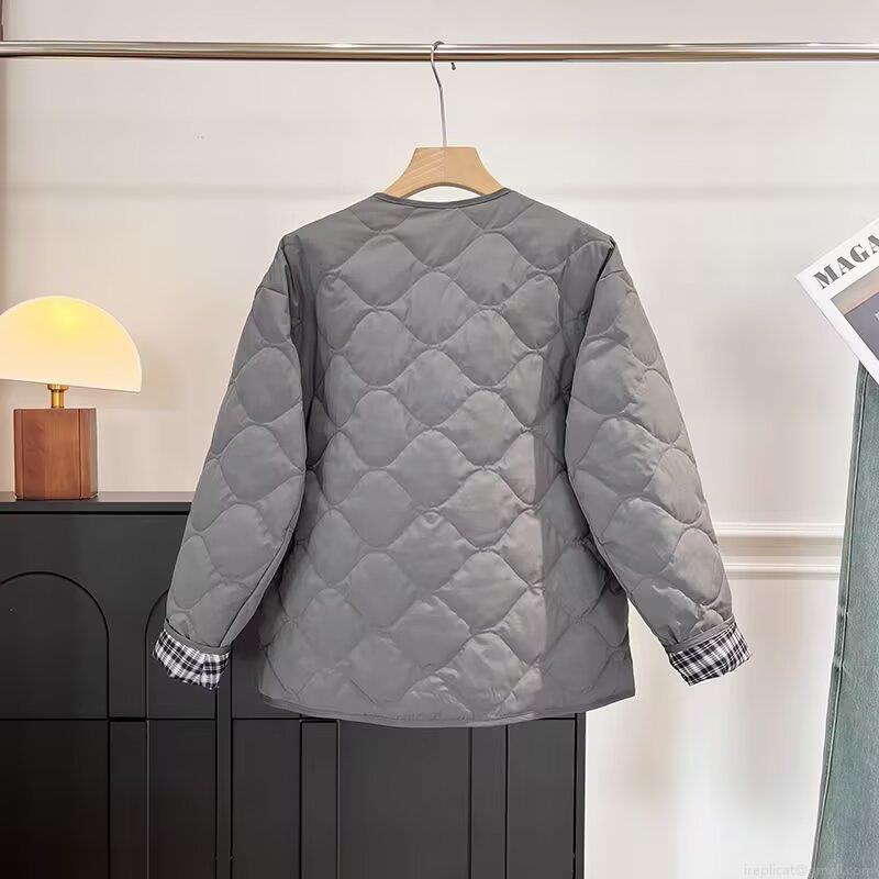 • Women's Casual Diamond Quilted Padded Jacket Fashionable V-Neck Winter Warm Cotton Coat With Plaid Lining And Zipper Pockets