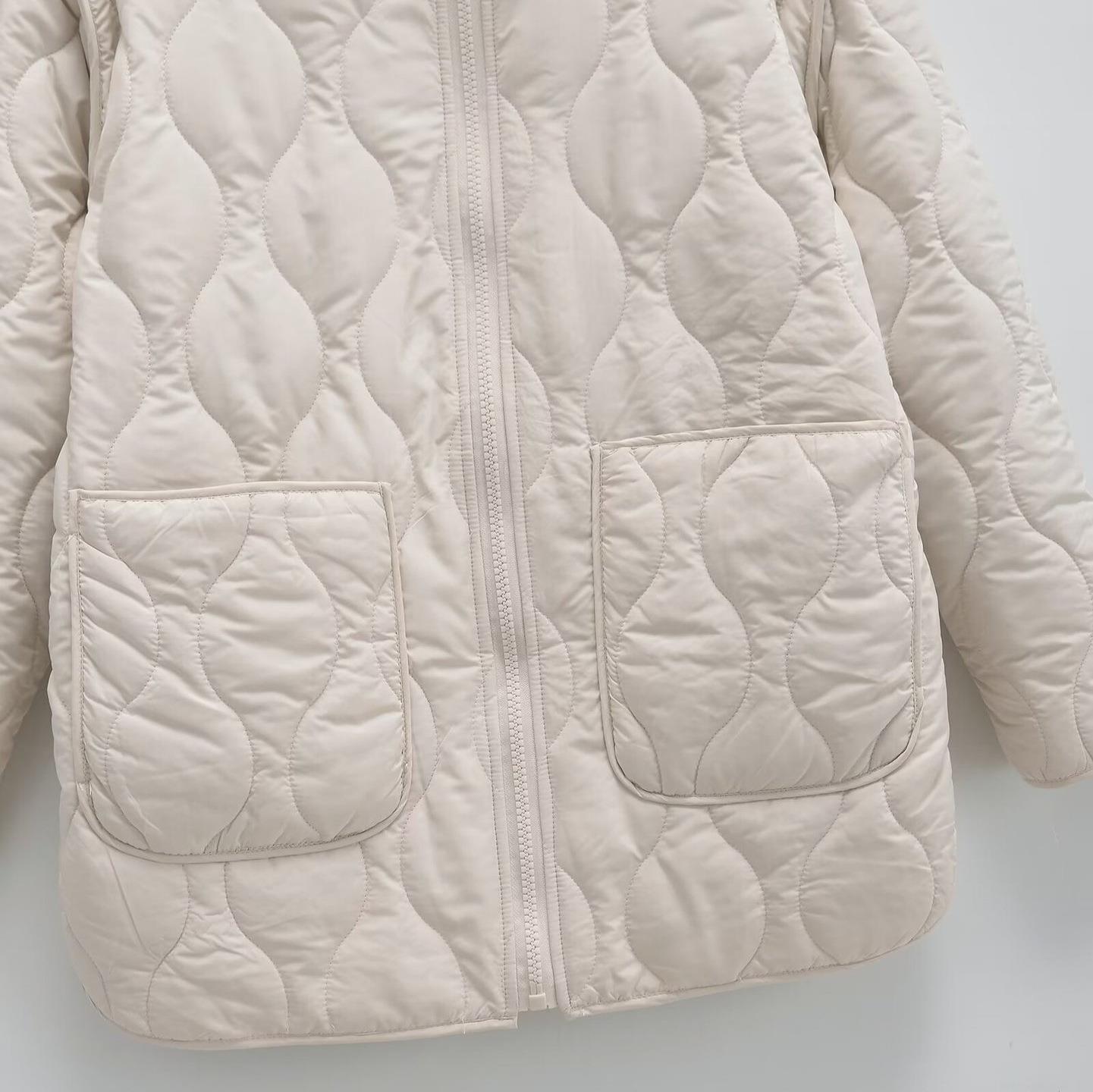 • Women's Casual Hooded Padded Jacket Long Loose Wavy Quilted Polyester Winter Coat With Zipper And Large Pockets Warm Outerwear