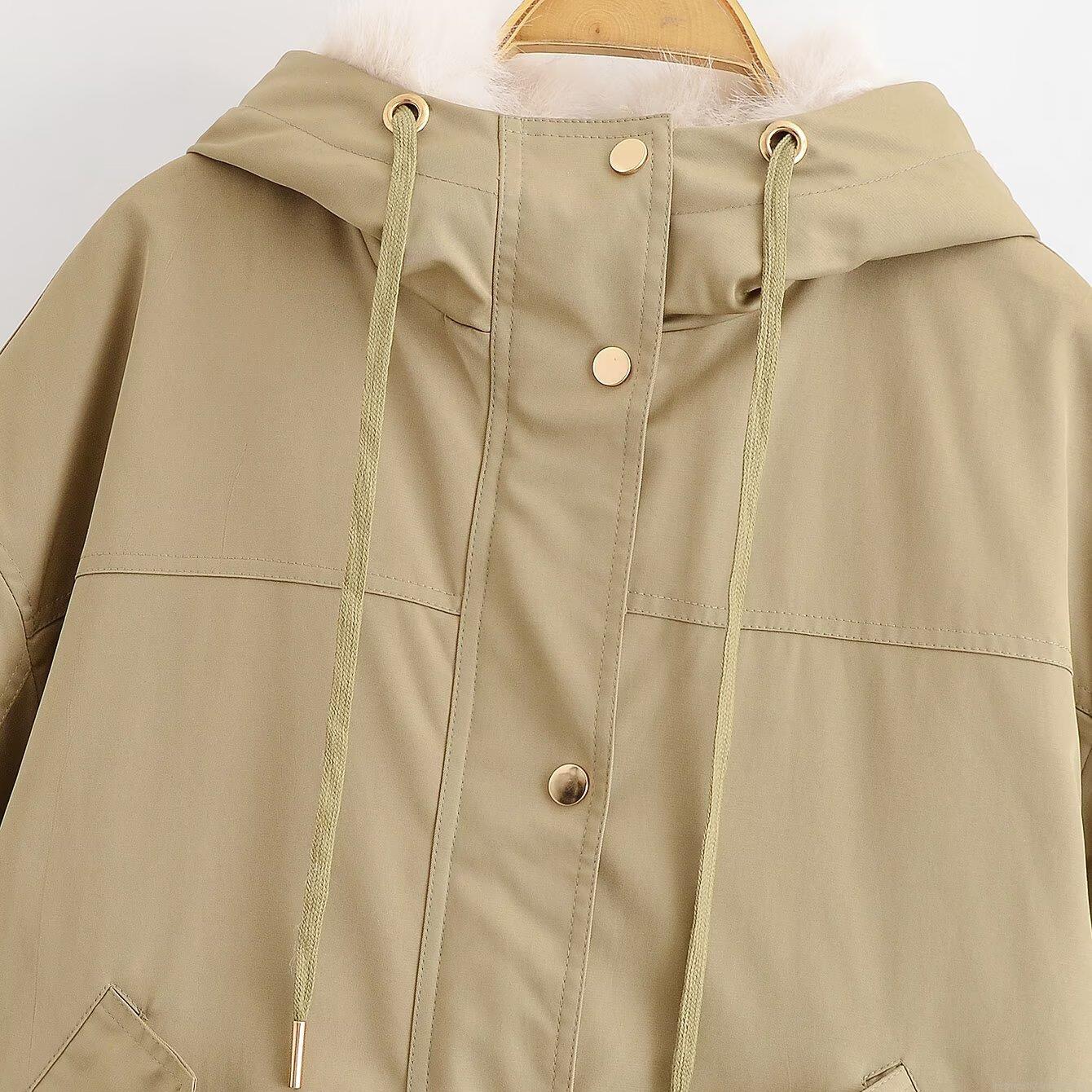 • Women's Casual Hooded Parka Jacket With Faux Fur Collar Warm Polyester Padded Coat For Winter Autumn Outdoor Khaki Zip Up Windproof Outerwear