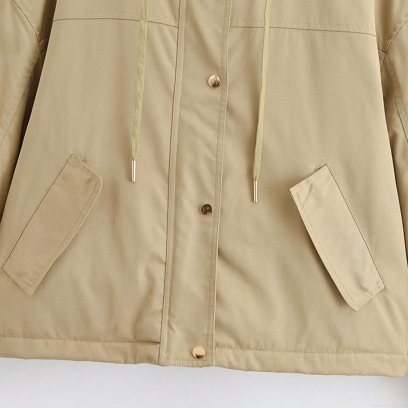 Solid Color, Drawstring, Metal Buckle, Hood, Multiple Pockets, Large Fur Collar