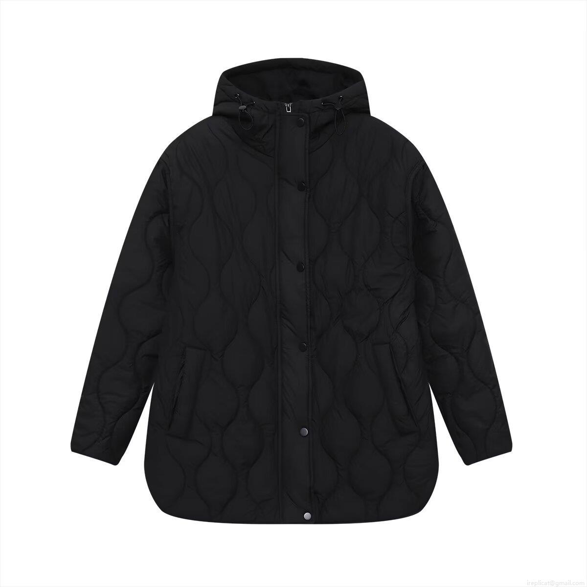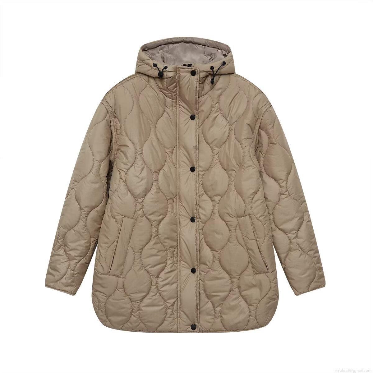 • Women's Casual Hooded Quilted Jacket Polyester Padded Warm Onion Quilted Outerwear Loose Fit Single Breasted Mid-Length Coat For Autumn Winter