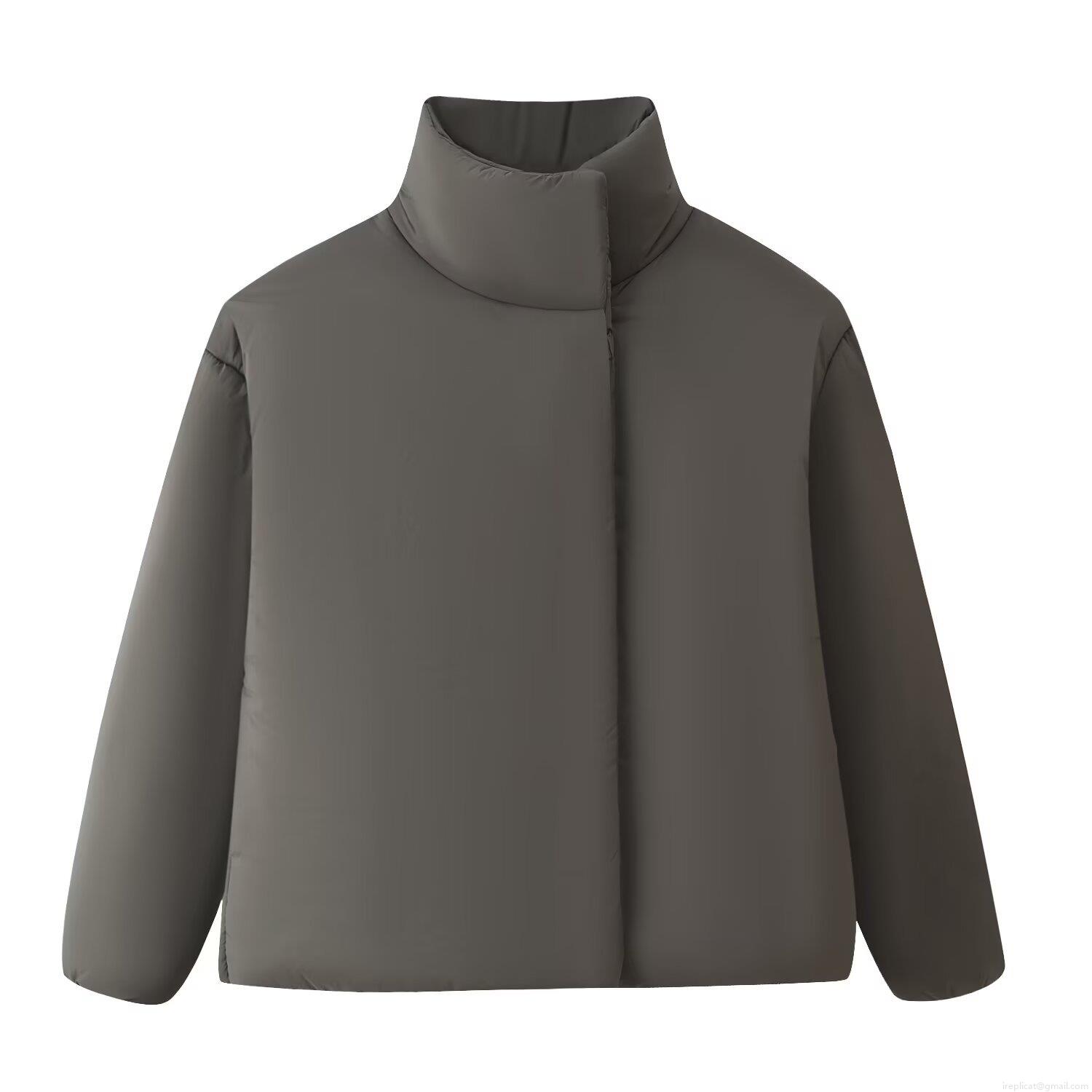 • Women's Casual Loose Padded Jacket Stand Collar Long Sleeve Solid Color Winter Coat Minimalist Streetwear Outerwear For Women Polyester Padded Jacket With Concealed Button