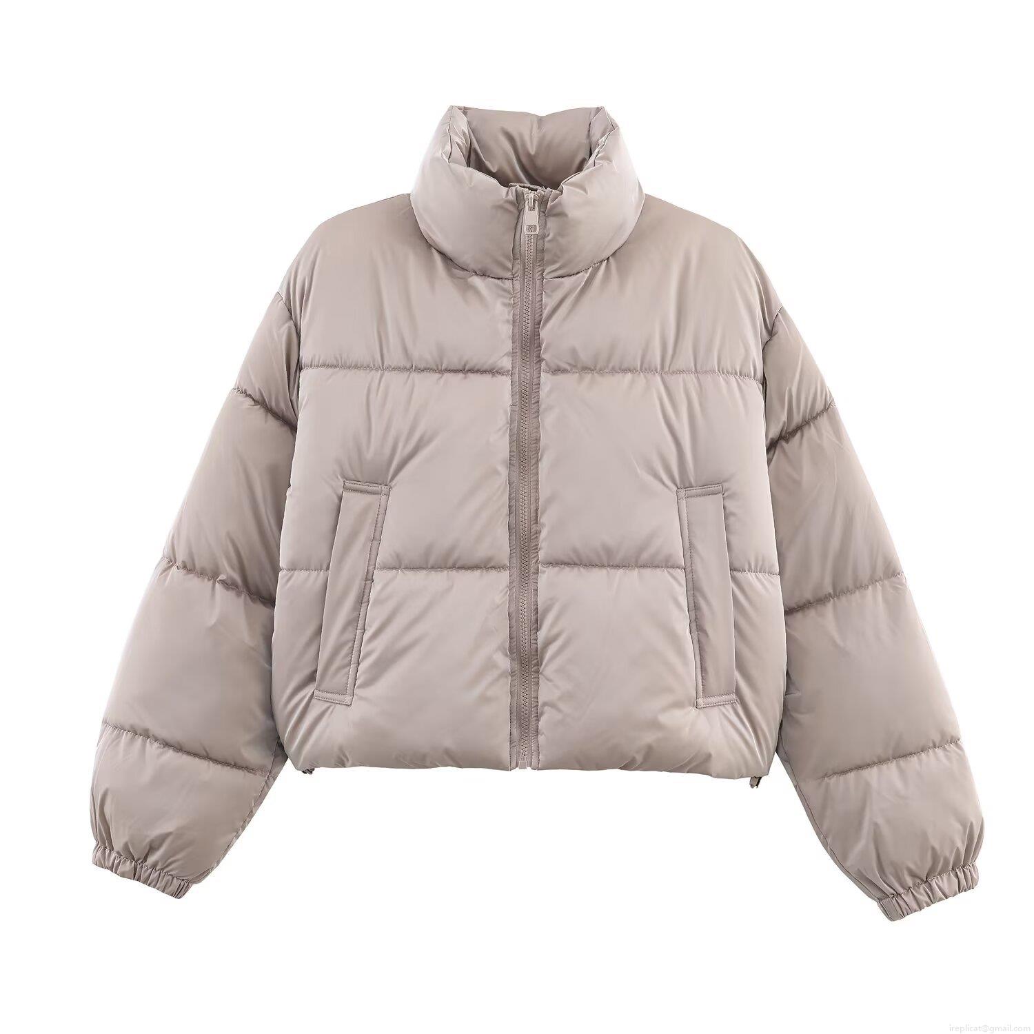 • Women's Casual Loose Stand Collar Puffer Jacket Short Quilted Cotton-Padded Coat With Zipper Pockets Warm Windproof Autumn Winter Outerwear