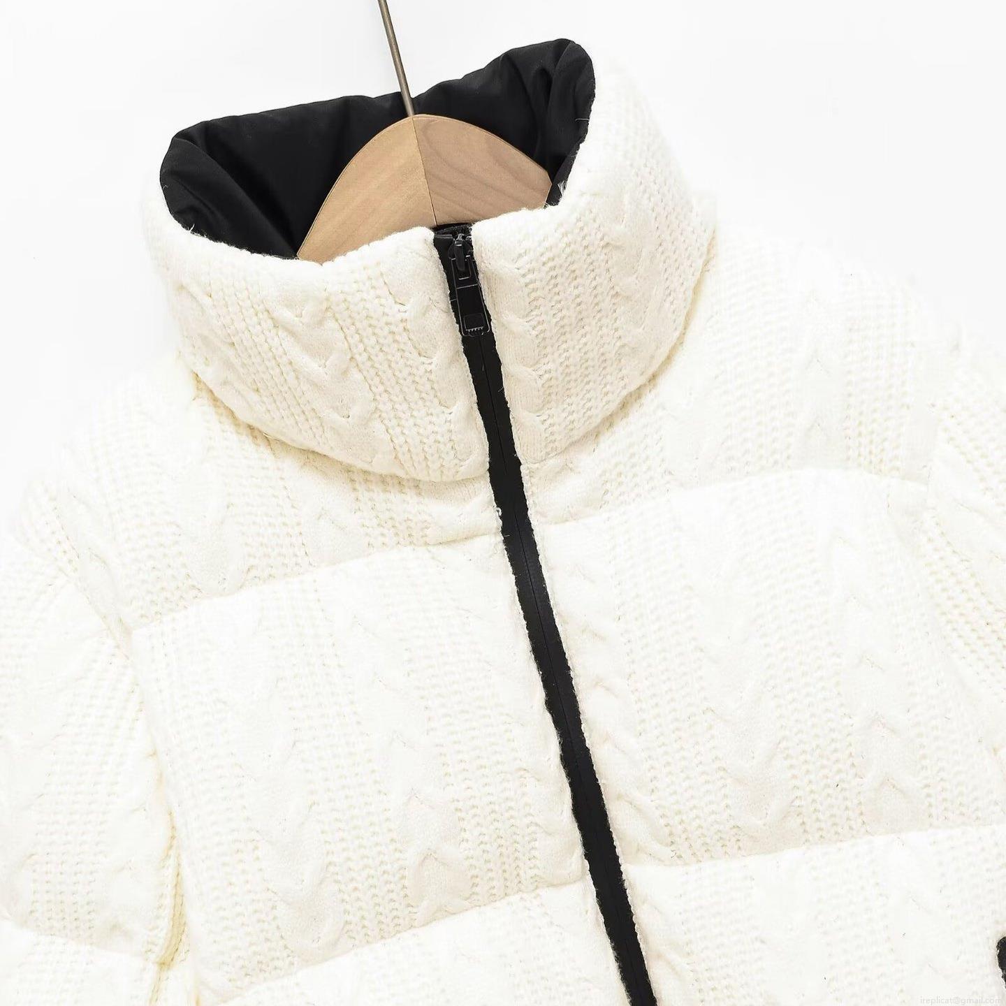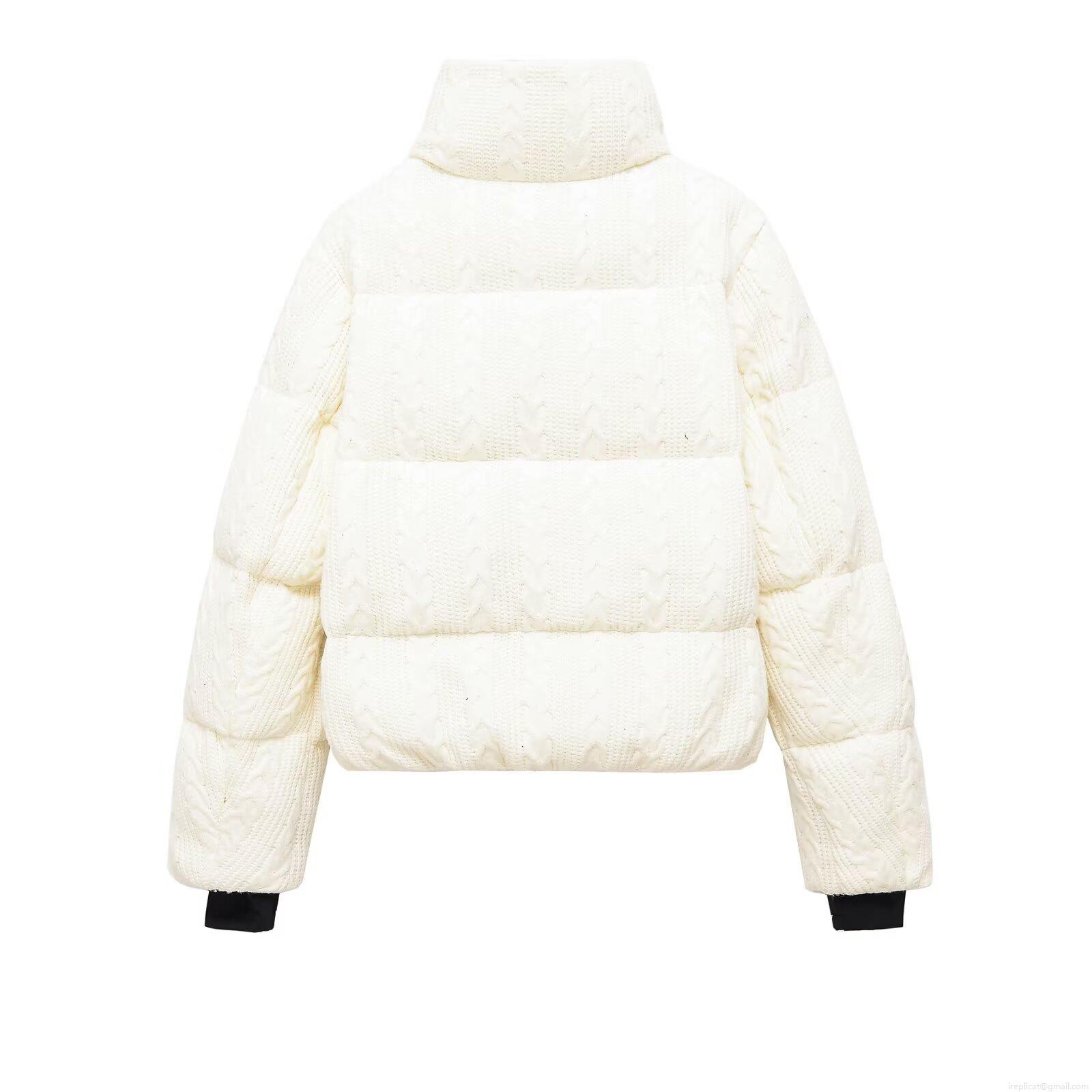 • Women's Casual Puffer Jacket Thick Warm Polyester Padded Coat With Cable Knit Texture High Stand Collar Windproof Ski Wear For Winter Women White Black Zipper