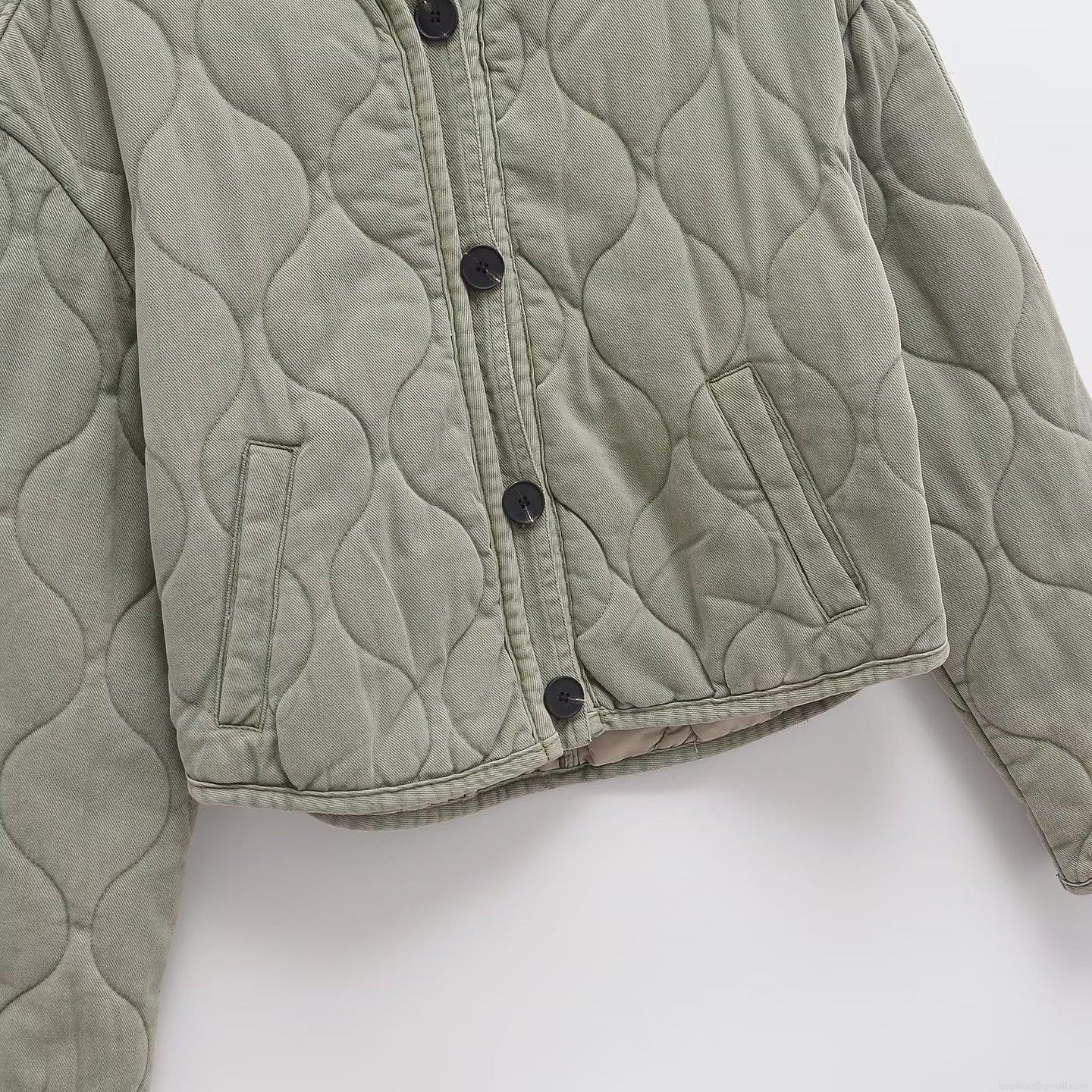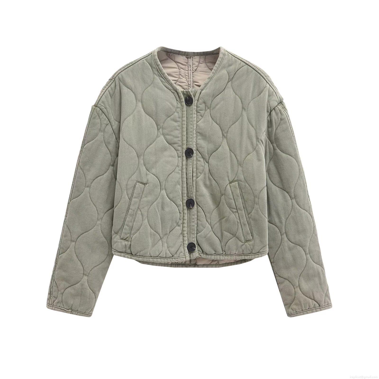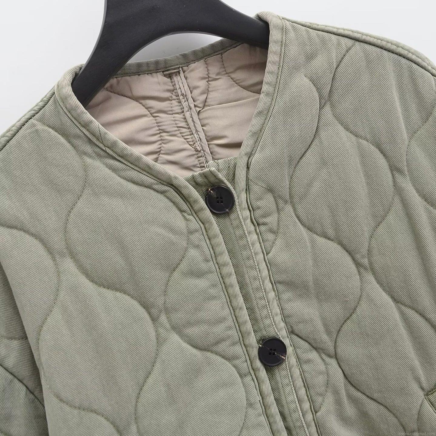 • Women's Casual Quilted Jacket Vintage Washed Padded Coat With Round Neck Warm Lightweight Puffer Outerwear For Lady Winter Daily Wear