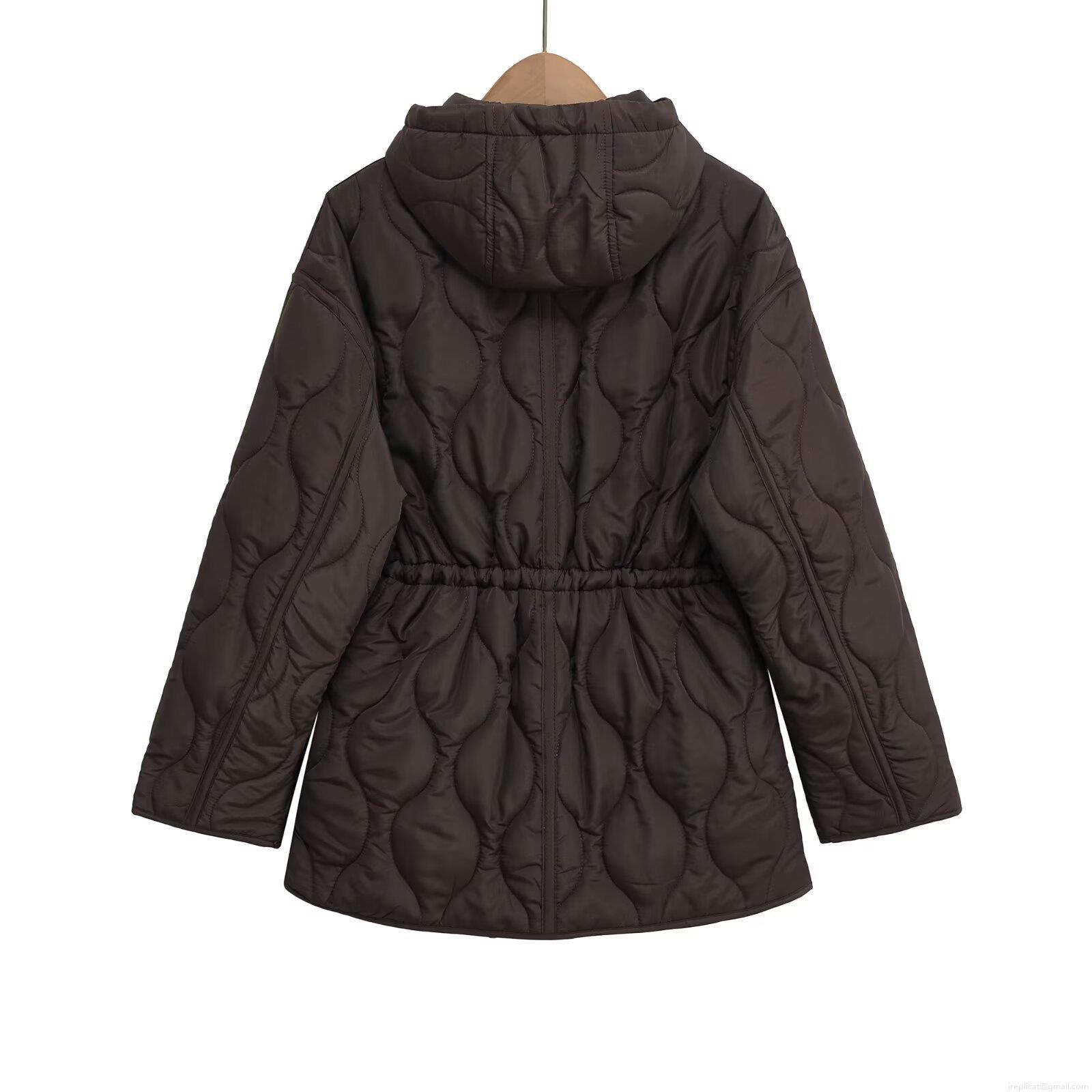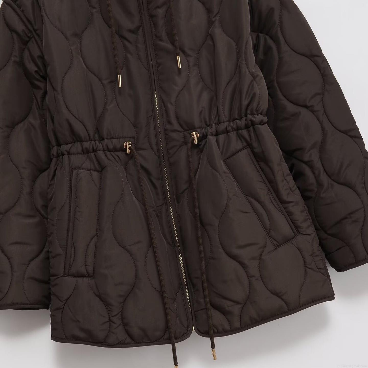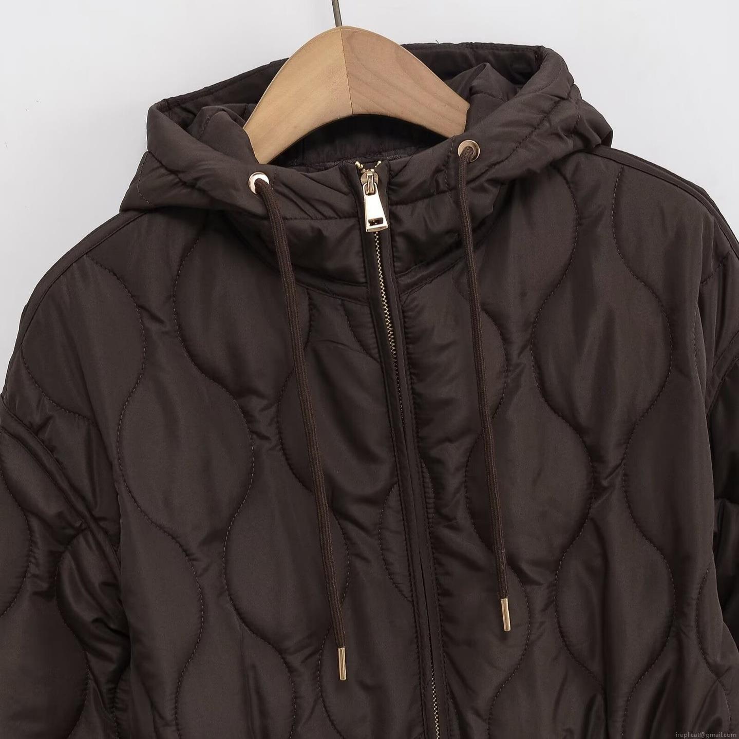 • Women's Casual Quilted Padded Jacket Hooded Scallop Pattern Quilting Drawstring Waist Mid-Length Outerwear Coat With Zipper Pockets Solid Color Autumn Winter Warm Loose Jacket For Women