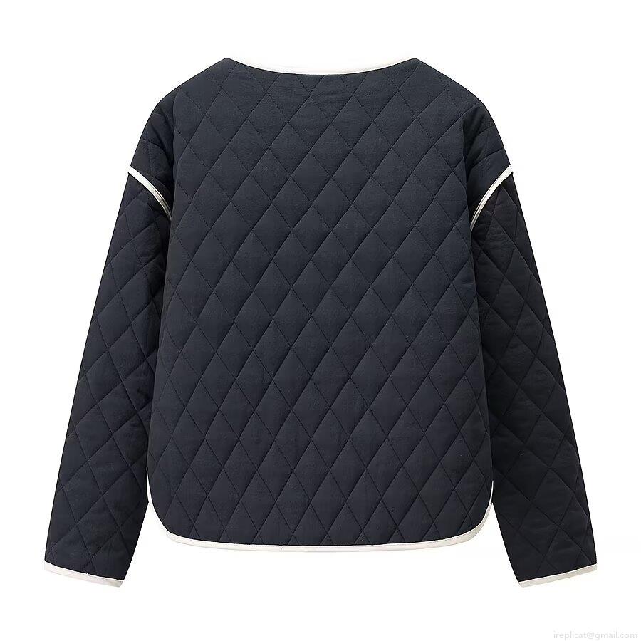 Solid Color, Diamond Pattern, Single-breasted, Quilting, Contrasting Color Piping, Striped Lining