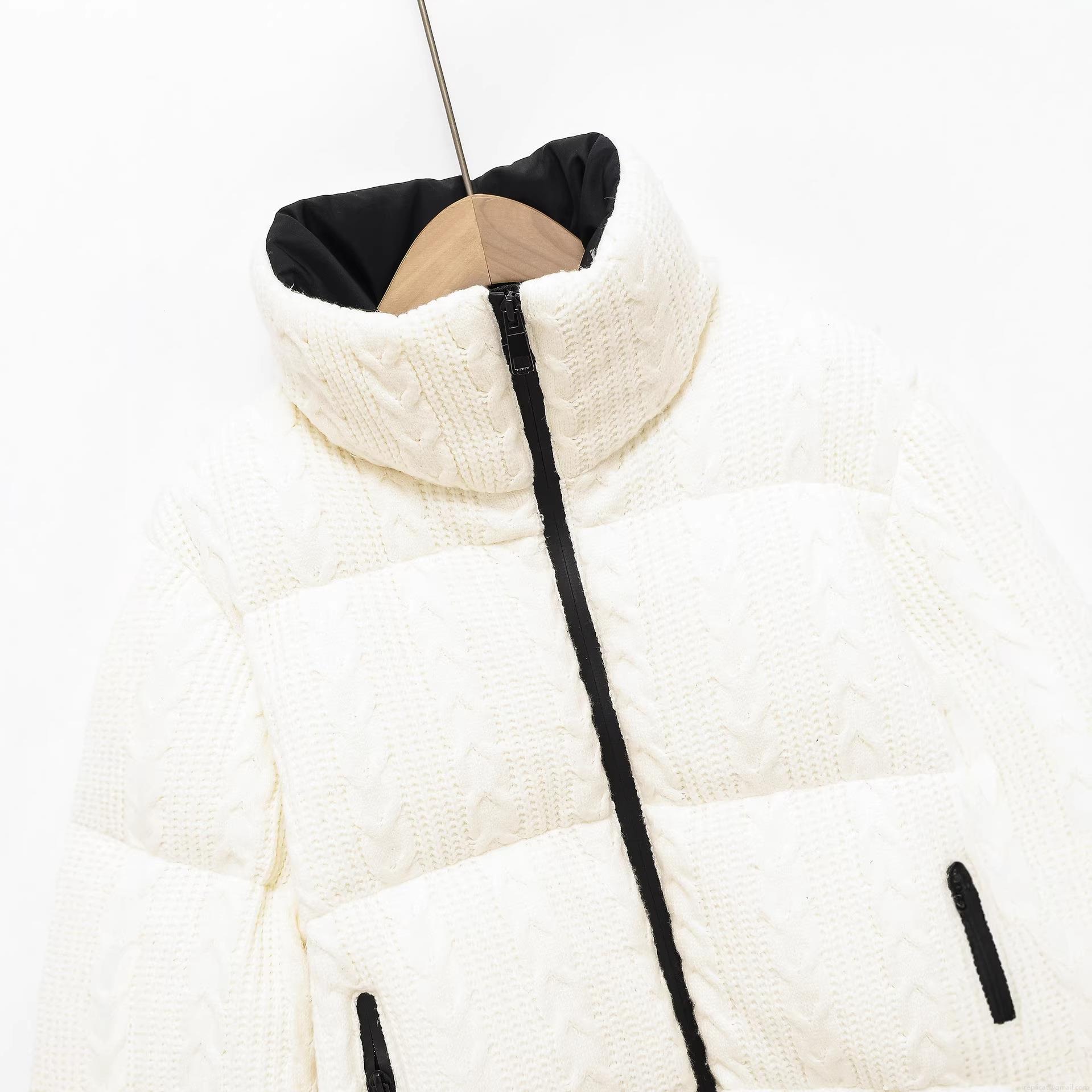 • Women's Casual Winter Puffer Jacket Cable Knit Texture Thick Warm Stand Collar Windproof Ski Coat Retro Women's Outerwear