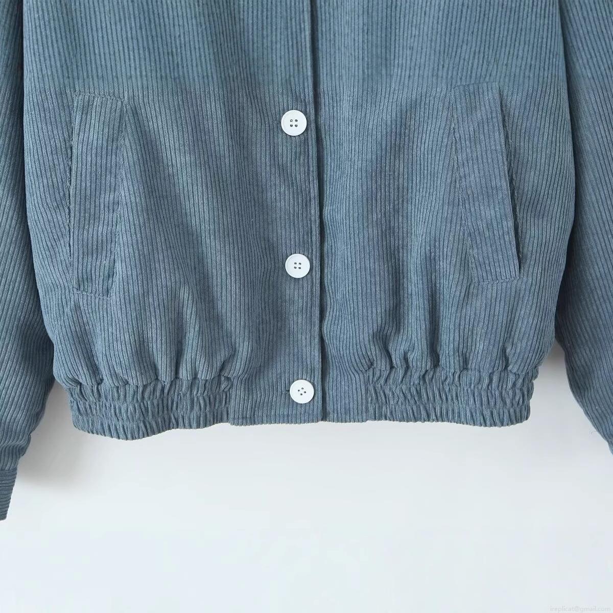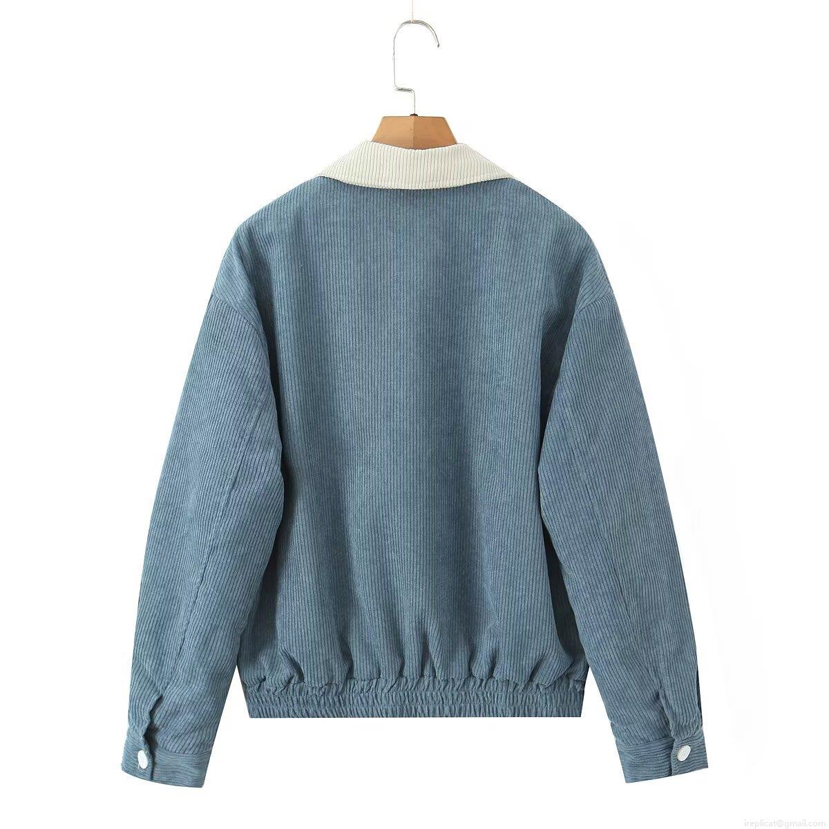 Solid Color, Corduroy, Quilting, Patch, Striped Texture, Color-blocked Collar