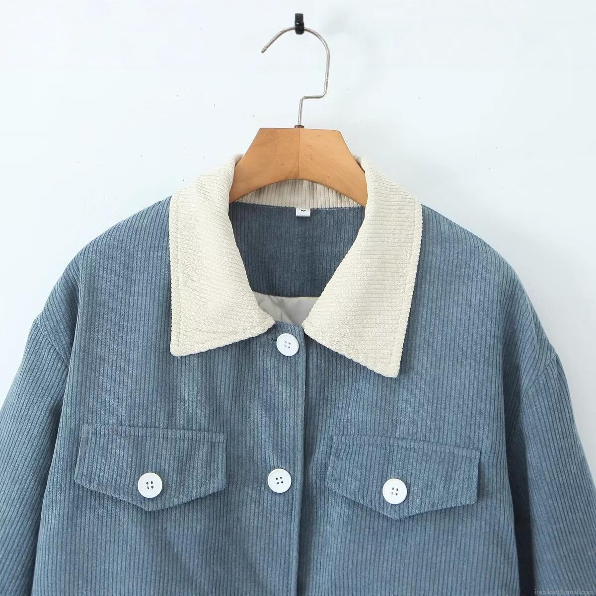 • Women's Corduroy Quilted Padded Jacket Contrast Collar Retro Casual Button Down Coat With Pockets Autumn Winter Outerwear
