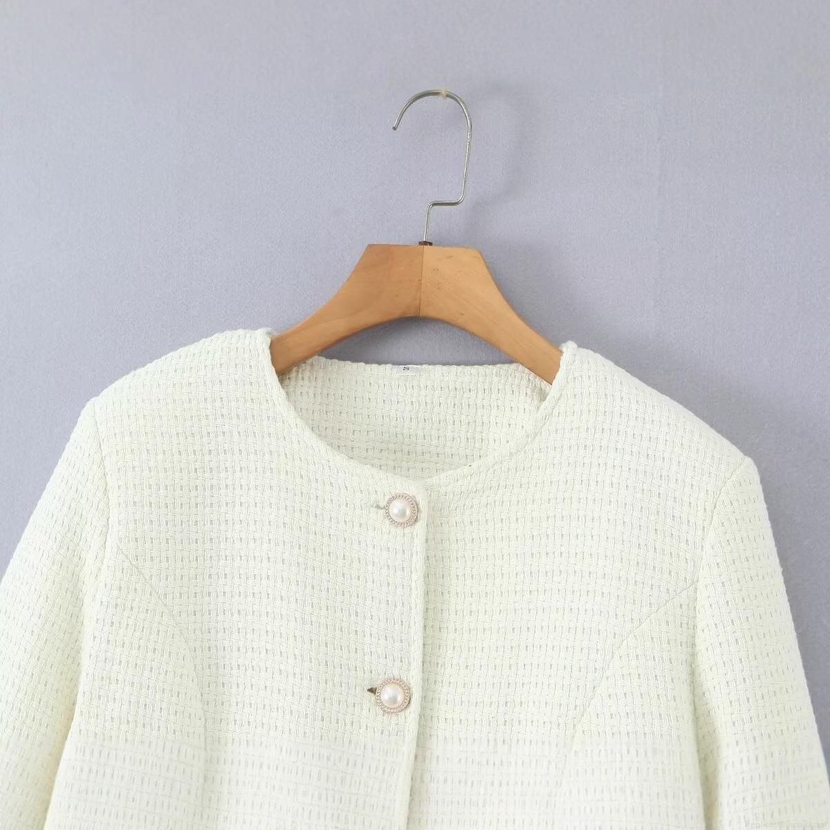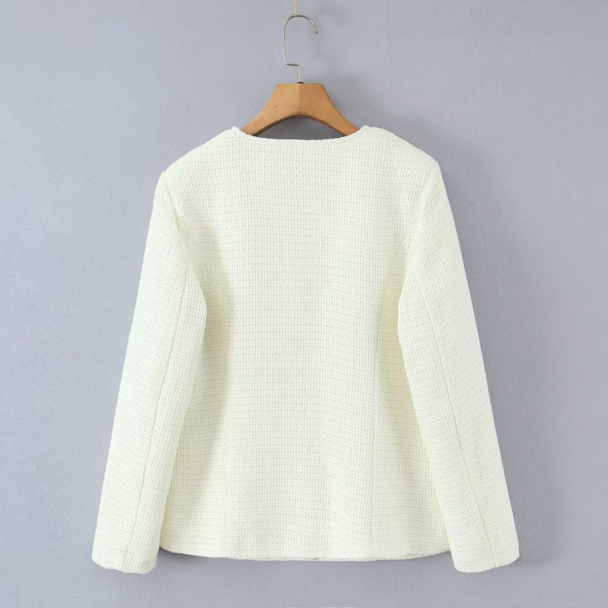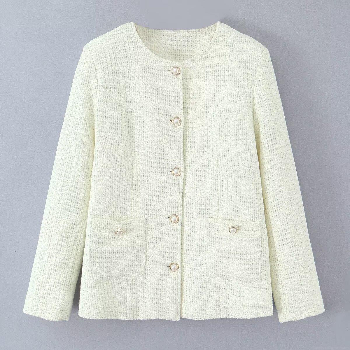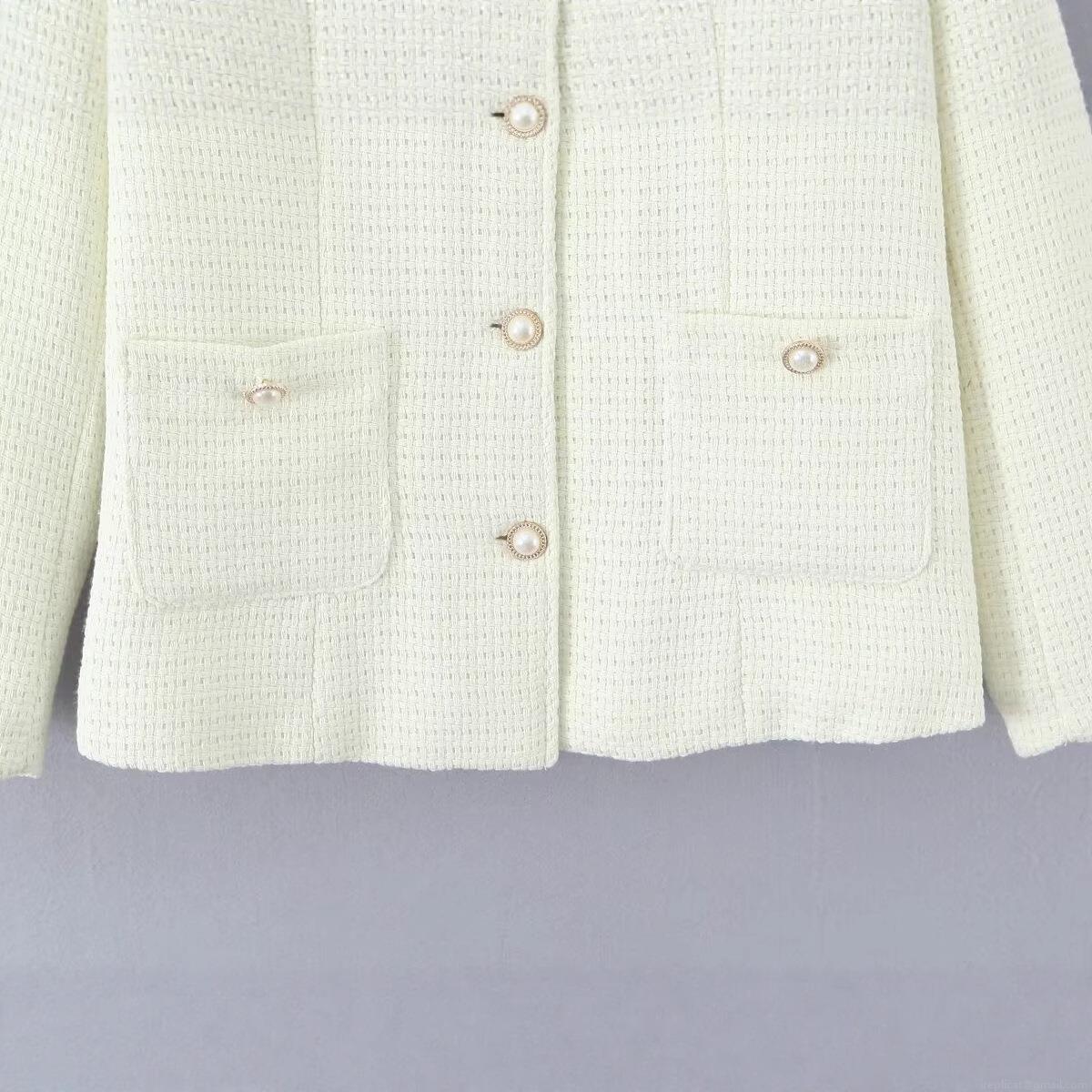Solid Color, Tweed, Woven Texture, Quilted Lining, Pearl Decorative Buckle, Patch Pocket