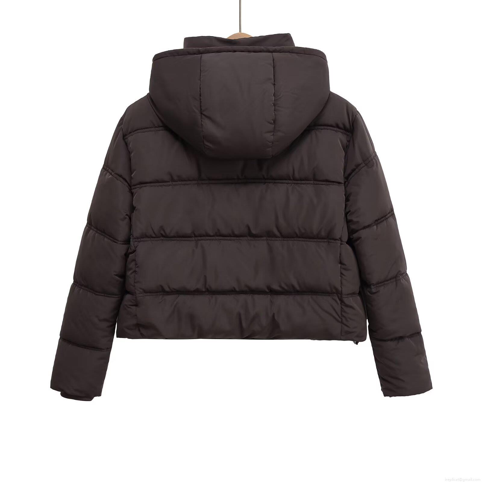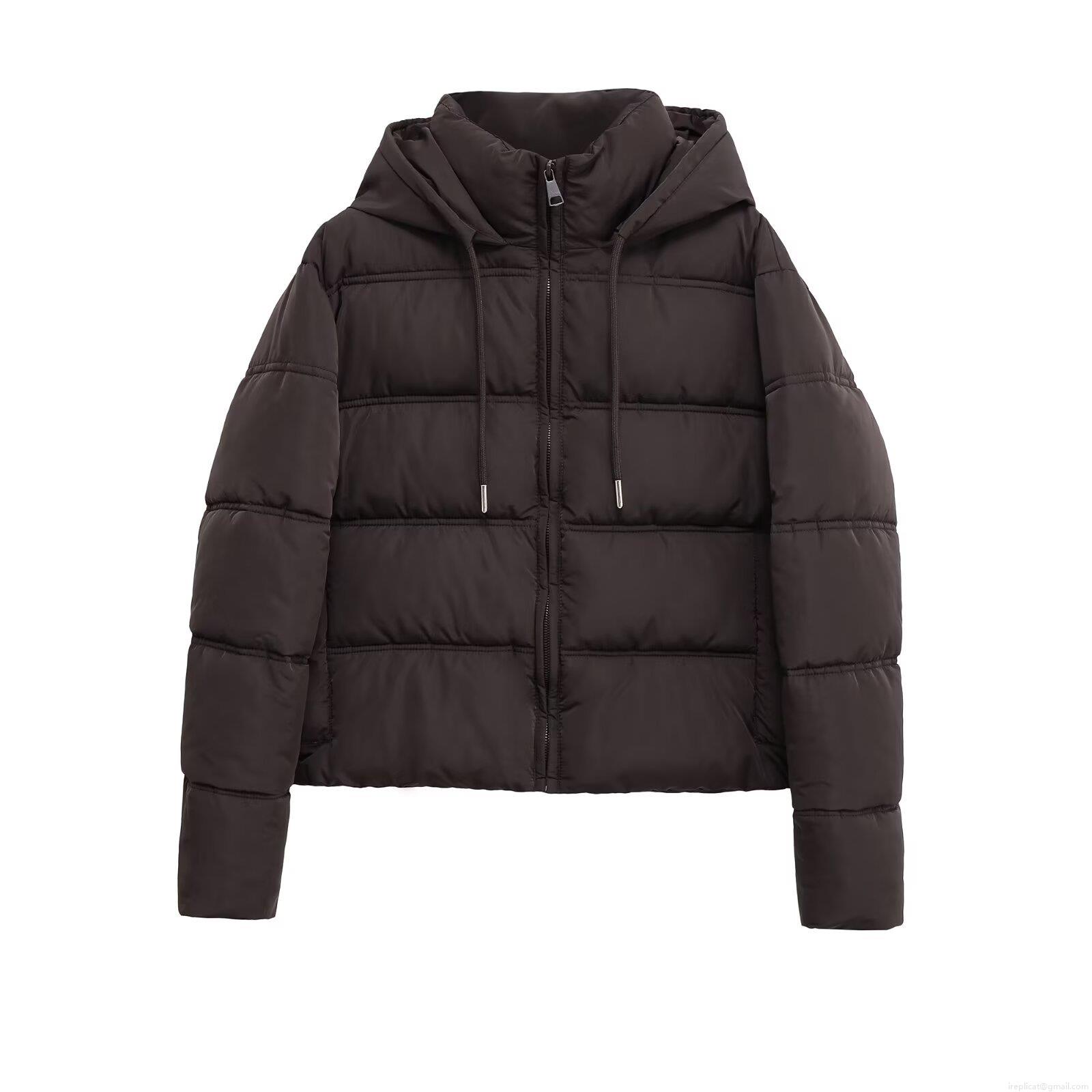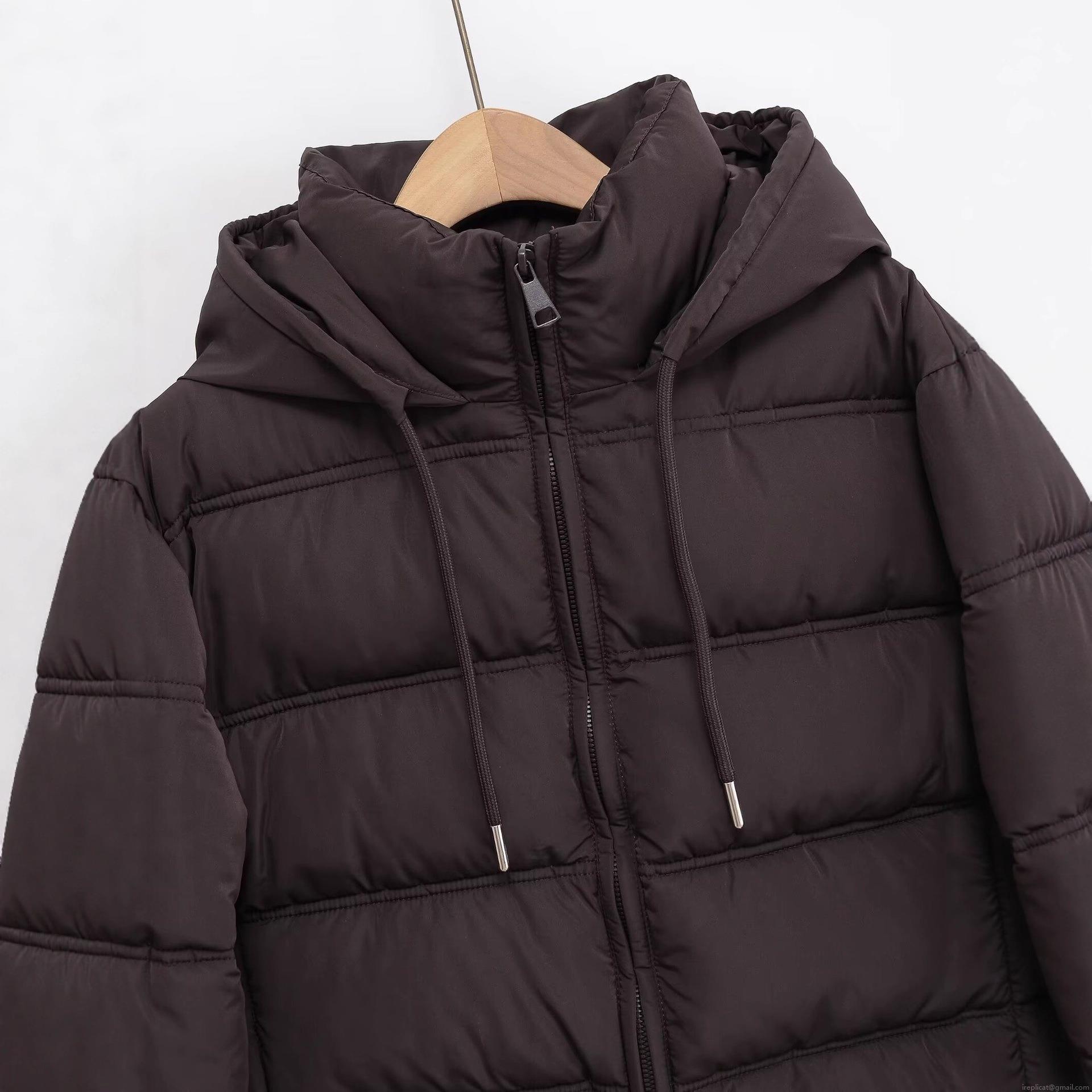 • Women's Espresso Brown Hooded Padded Jacket Horizontal Quilted Zip Up Long Sleeve Warm Winter Puffer Coat With Drawstring Hood Ribbed Cuffs Casual Streetwear Outdoor Outerwear