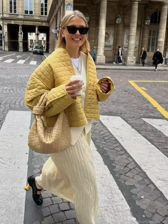 • Women's European Street Style Quilted Padded Jacket 100% Polyester Lightweight Warm Round Neck Single Breasted Diamond Pattern Loose Fit Outerwear For Winter Daily Street Travel Ladies