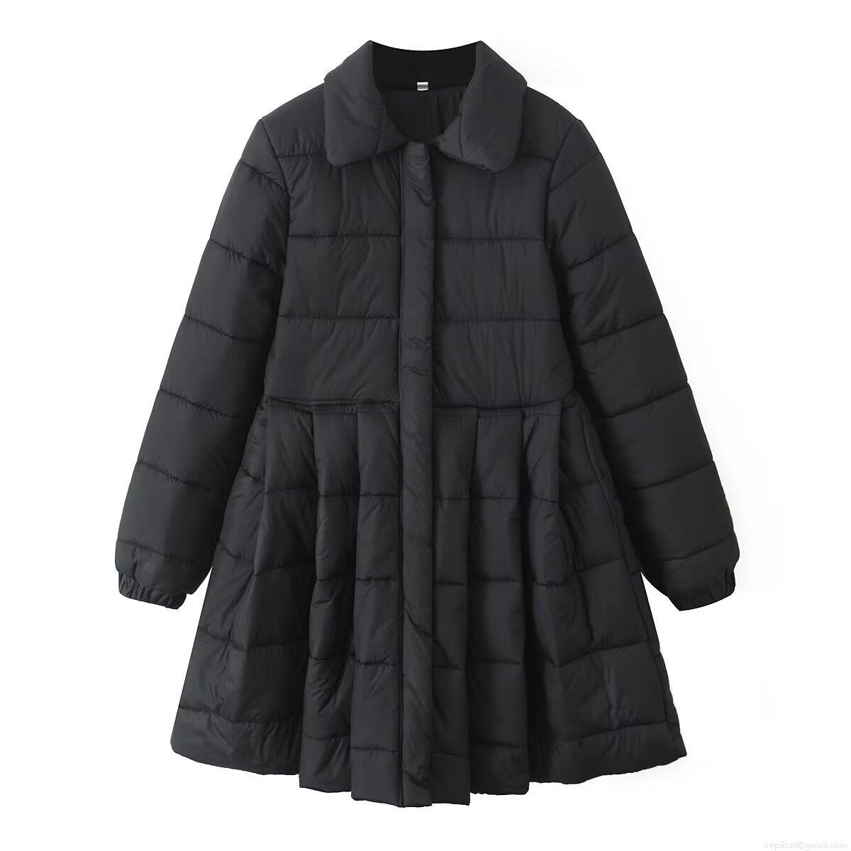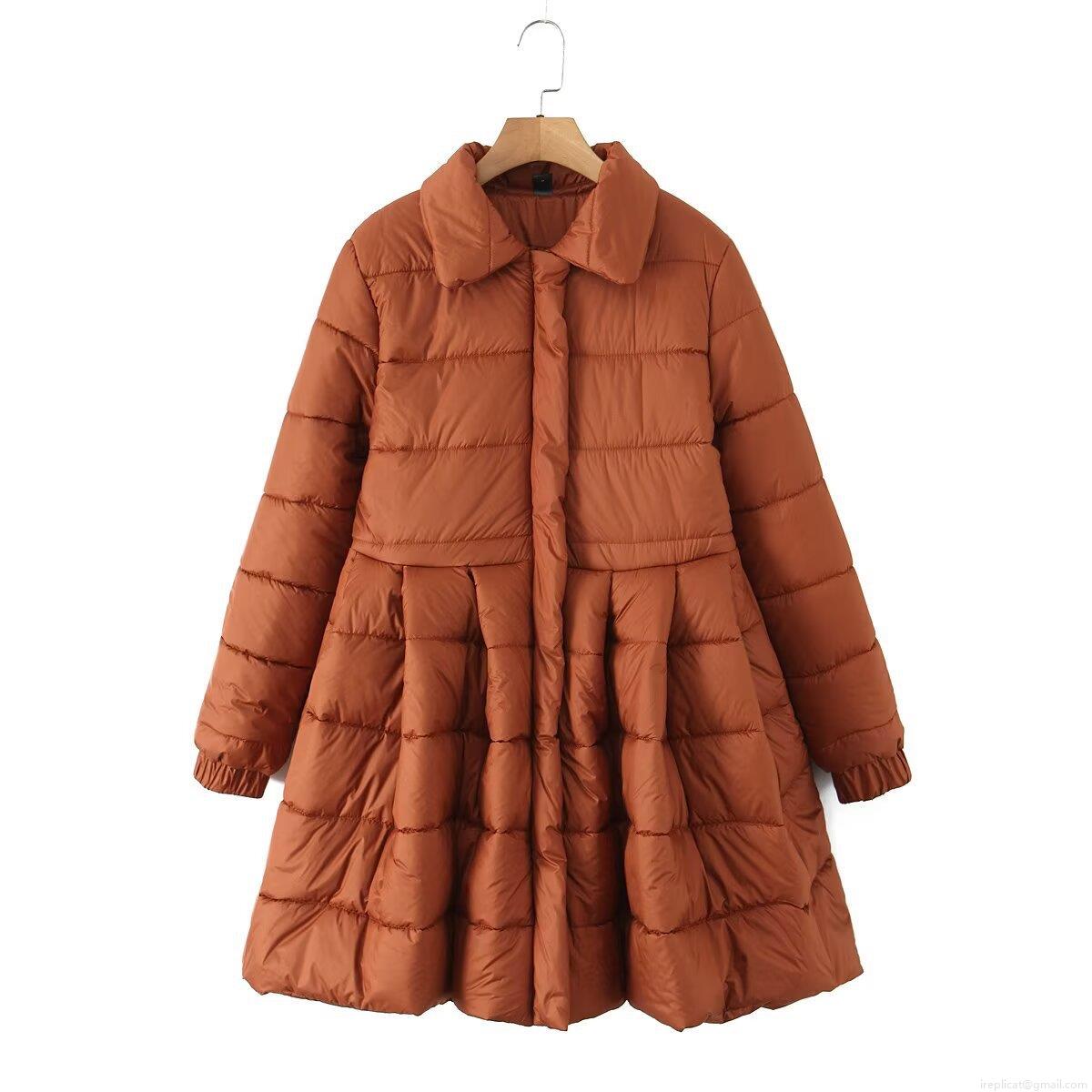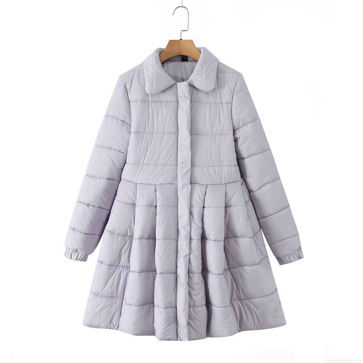 Women's European Style Lapel Long Sleeve Quilted Jacket With A-Line Flare Hem Winter Warm Padded Coat For Casual Outdoor Streetwear