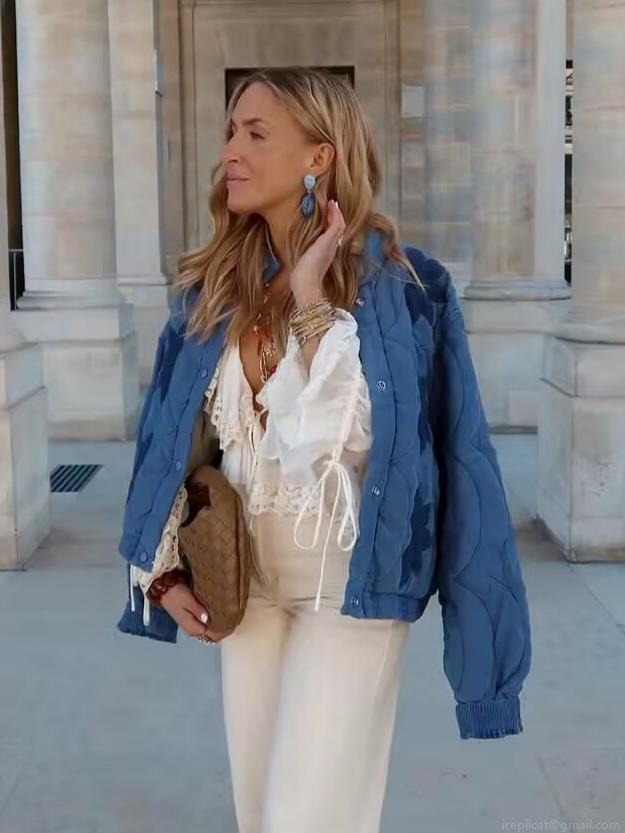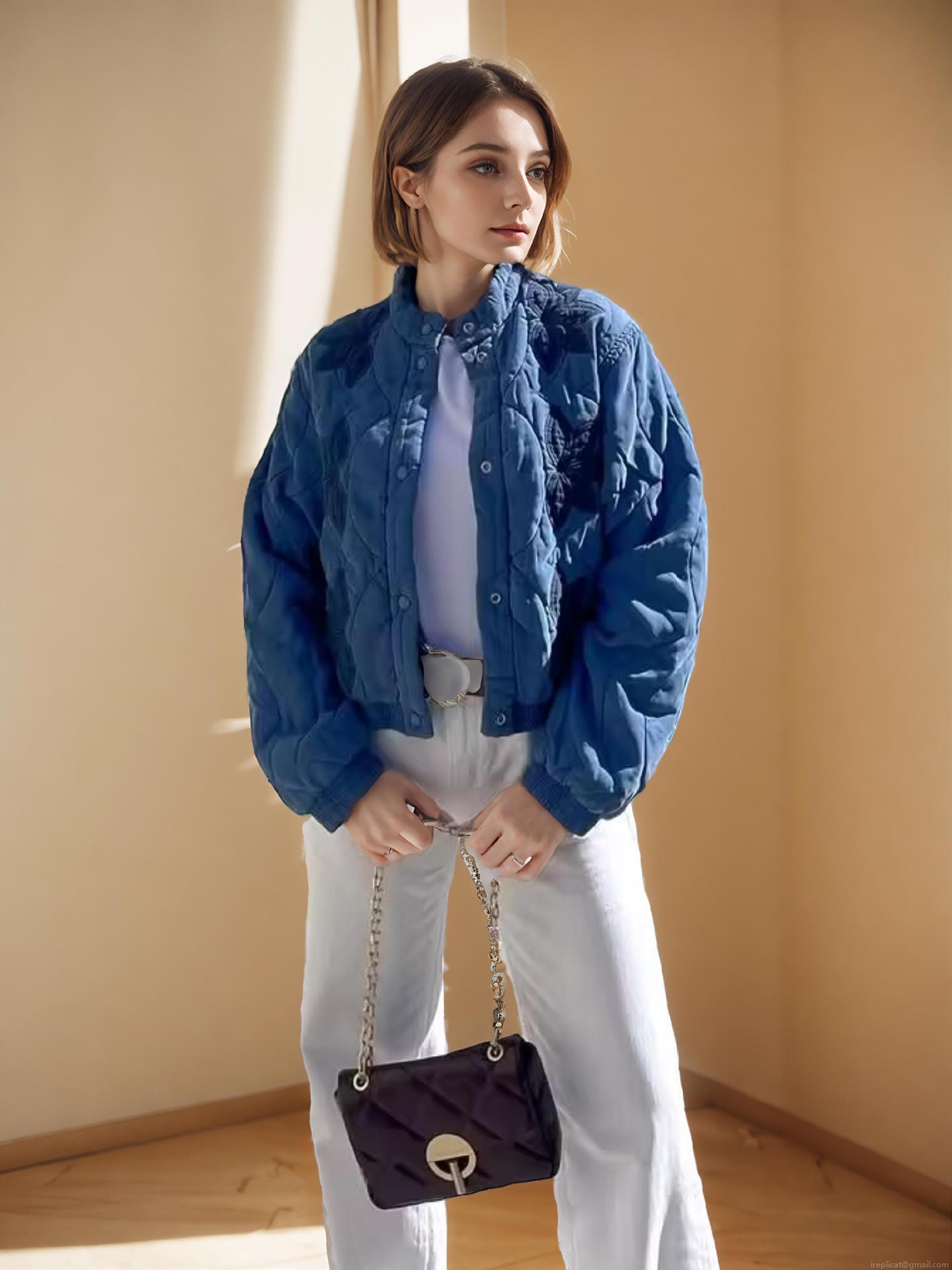 • Women's European Style Quilted Jacket Floral Embroidery Stand Collar Single Breasted Warm Padded Coat Outwear For Winter Autumn Streetwear