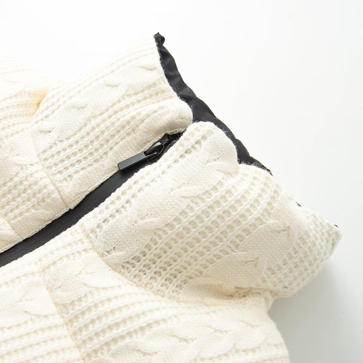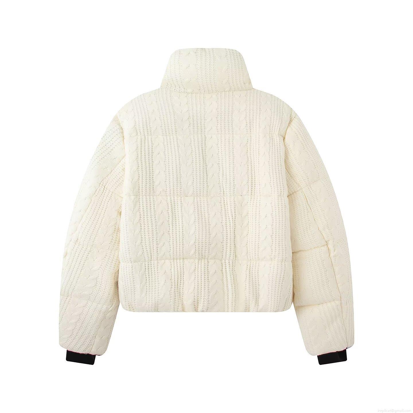 • Women's Fashion Cable Knit Puffer Jacket Polyester Silk Cotton Filling Standing Collar Zipper Outerwear White Winter Ski Casual Streetwear Coat