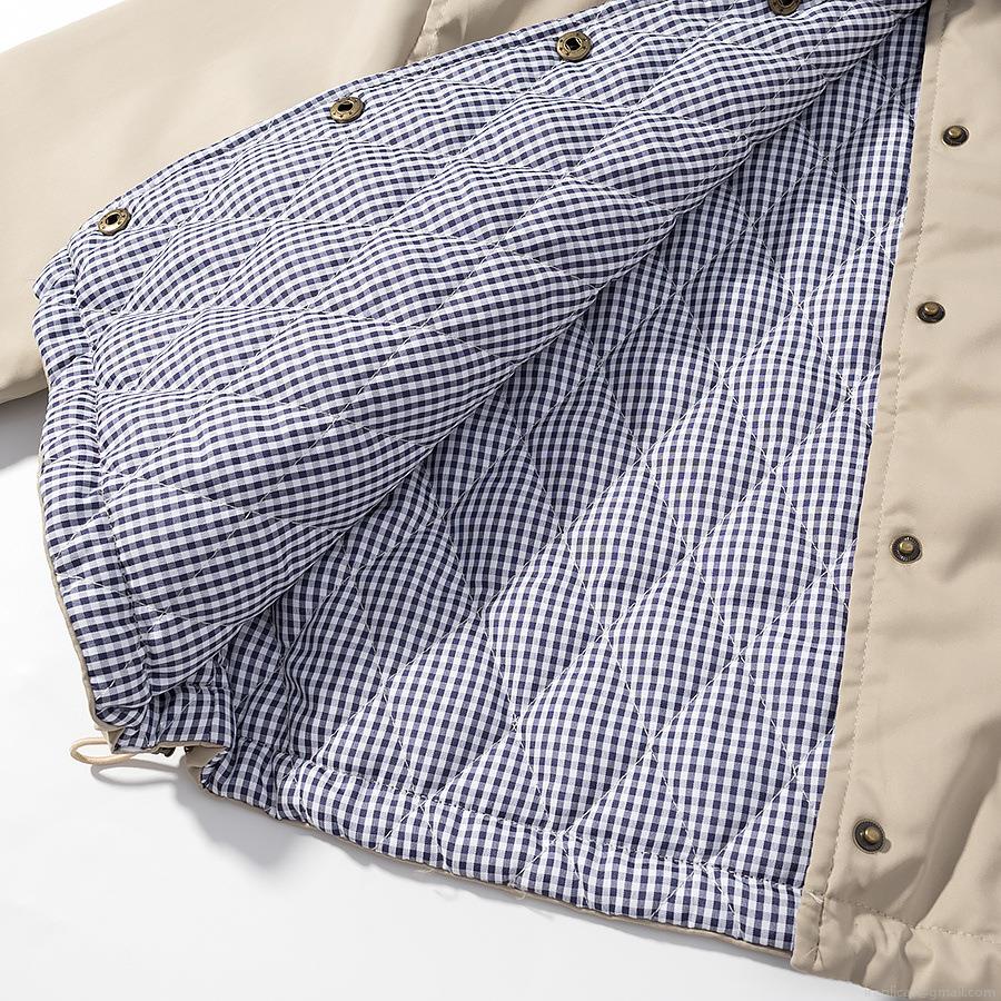 Solid Color, Checkered Pattern, Hood, Metal Snap, Diamond Quilting, Checkered Lining