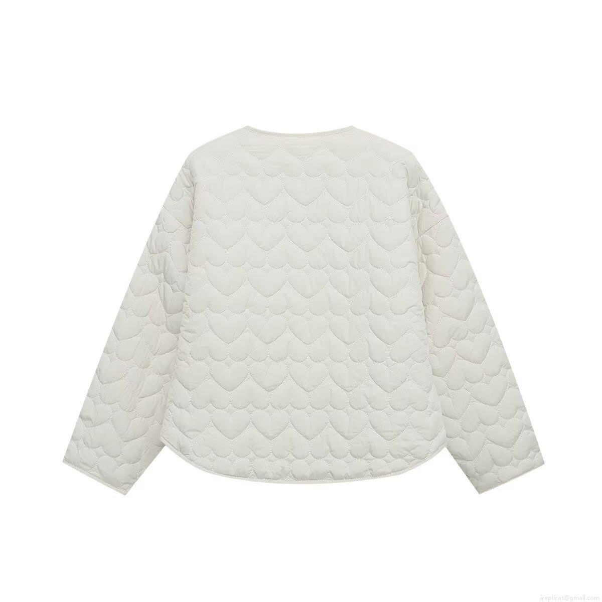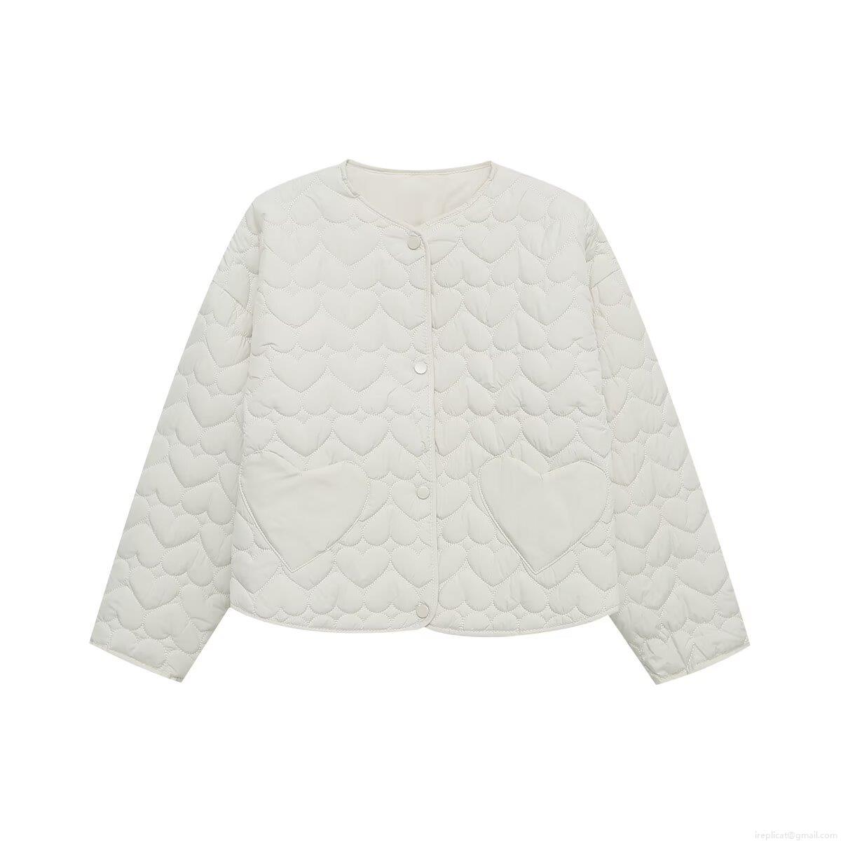 • Women's Fashion Heart Quilted Padded Jacket Round Neck Long Sleeve Button Up Short Coat Polyester Padded Winter Warm Streetwear Outwear For Ladies