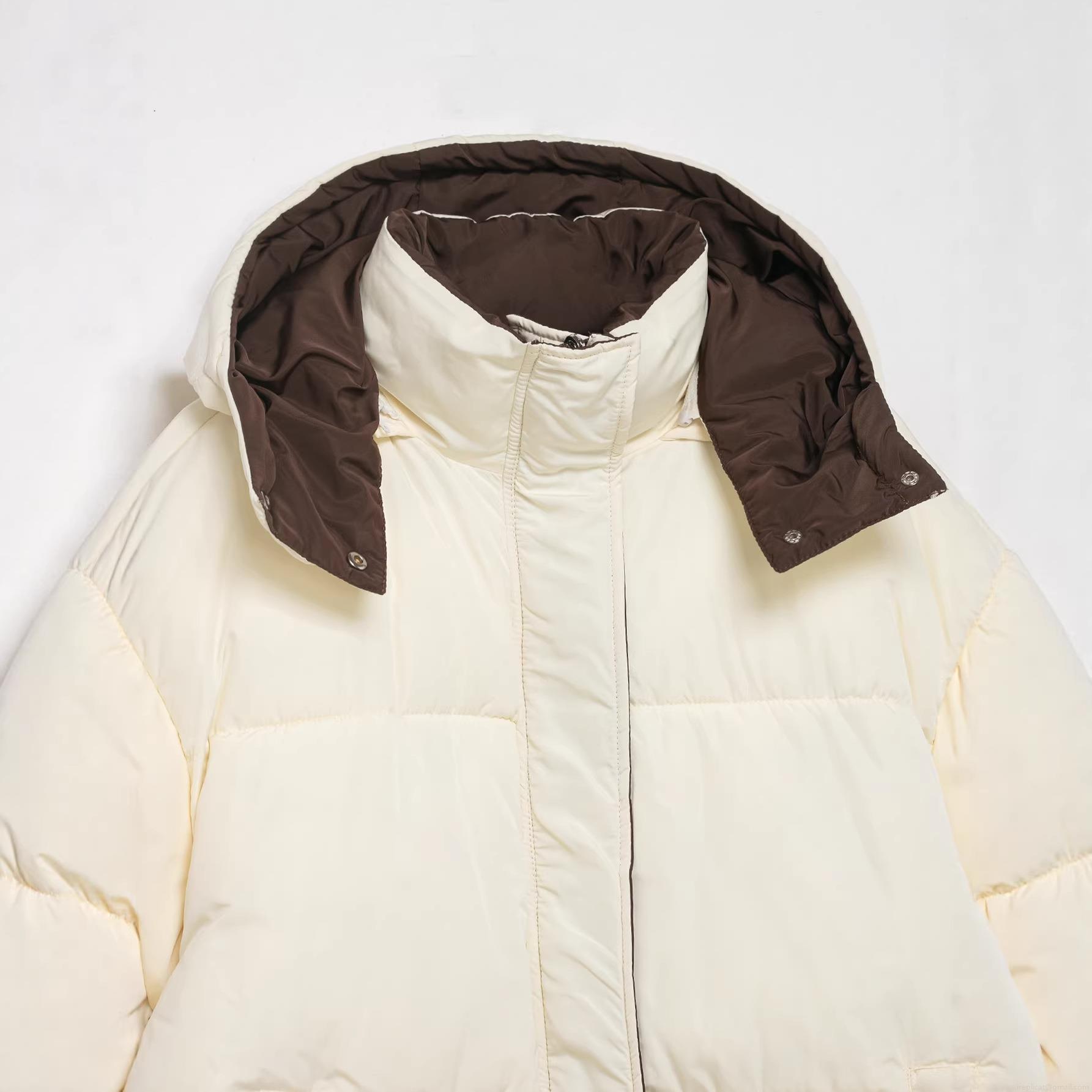 • Women's Fashion Hooded Puffer Jacket Contrasting Lining Quilted Cotton-Padded Coat Mid-Length Warm Winter Outerwear For Women