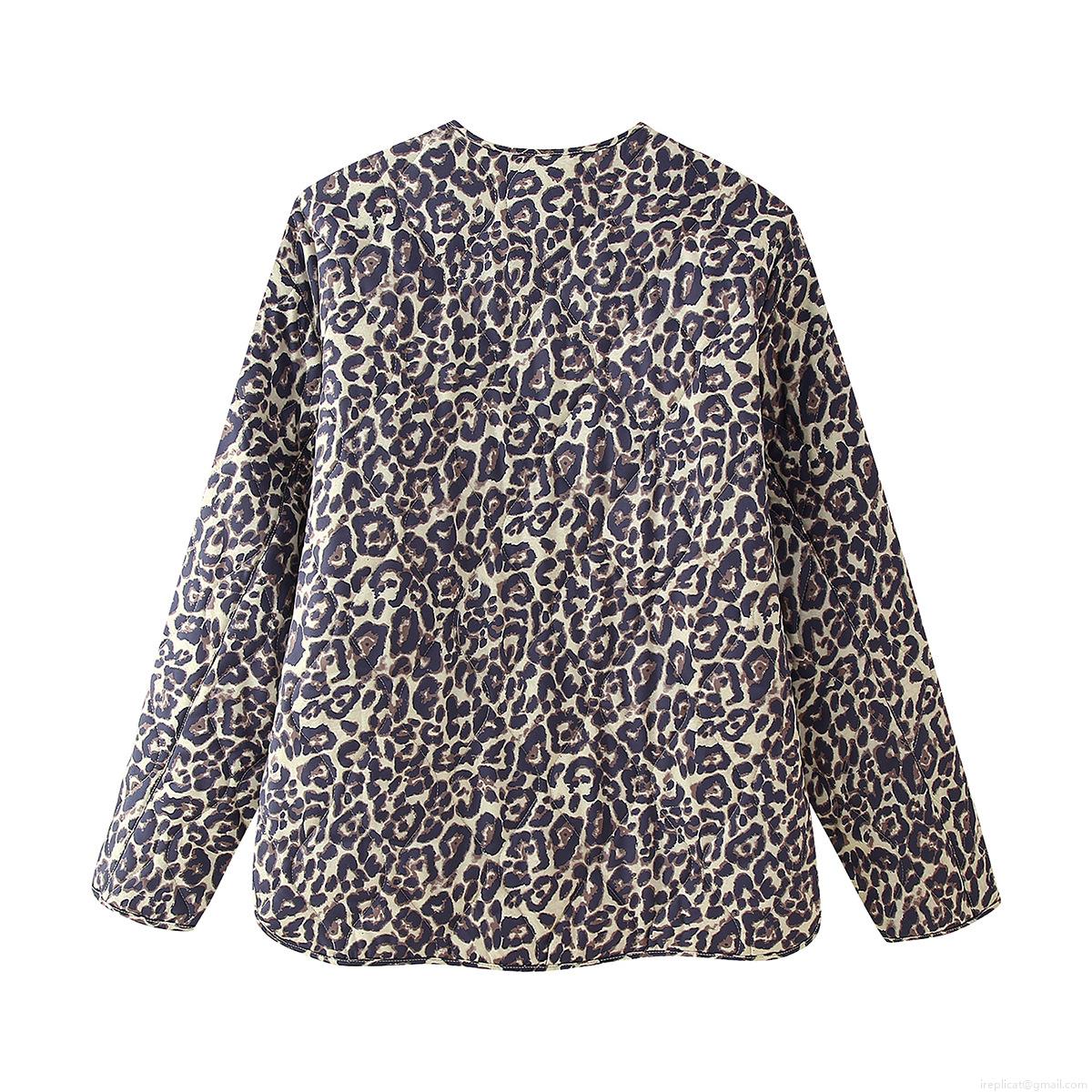 • Women's Fashion Leopard Print Quilted Jacket 100% Polyester Padding Zipper Front Puffer Coat With Pockets Casual Long Sleeve Streetwear Outerwear For Fall Winter
