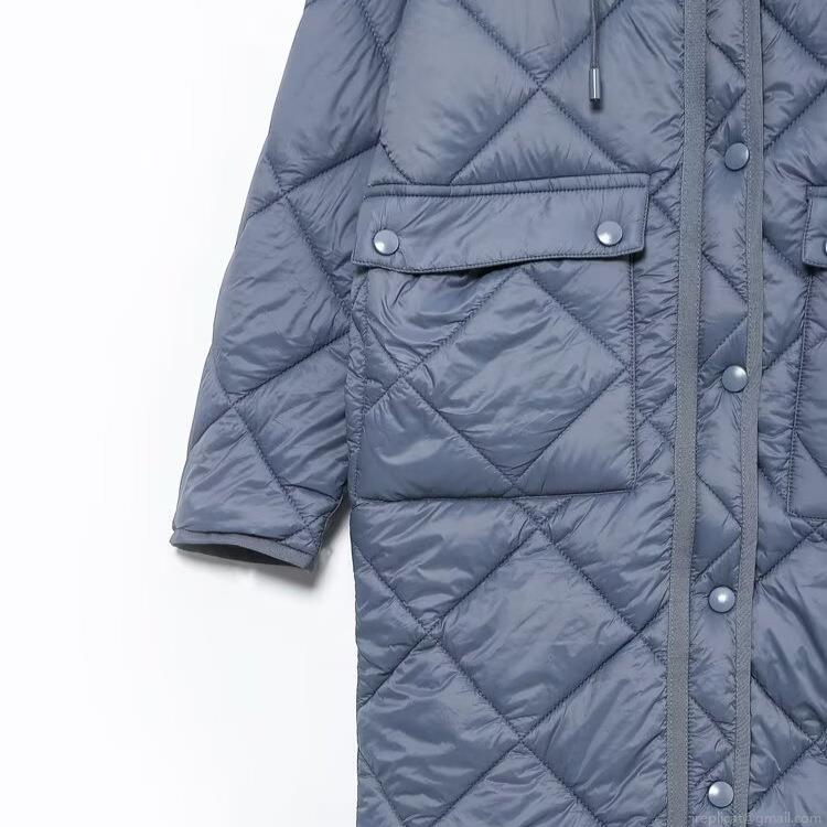 • Women's Fashion Long Hooded Quilted Padded Jacket 100% Polyester Diamond Quilt Warm Winter Coat Casual Loose Outerwear With Pockets For Women