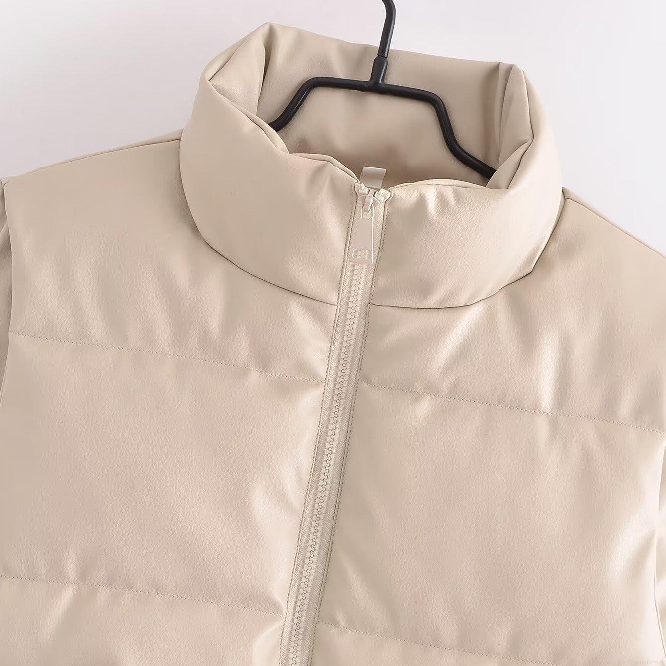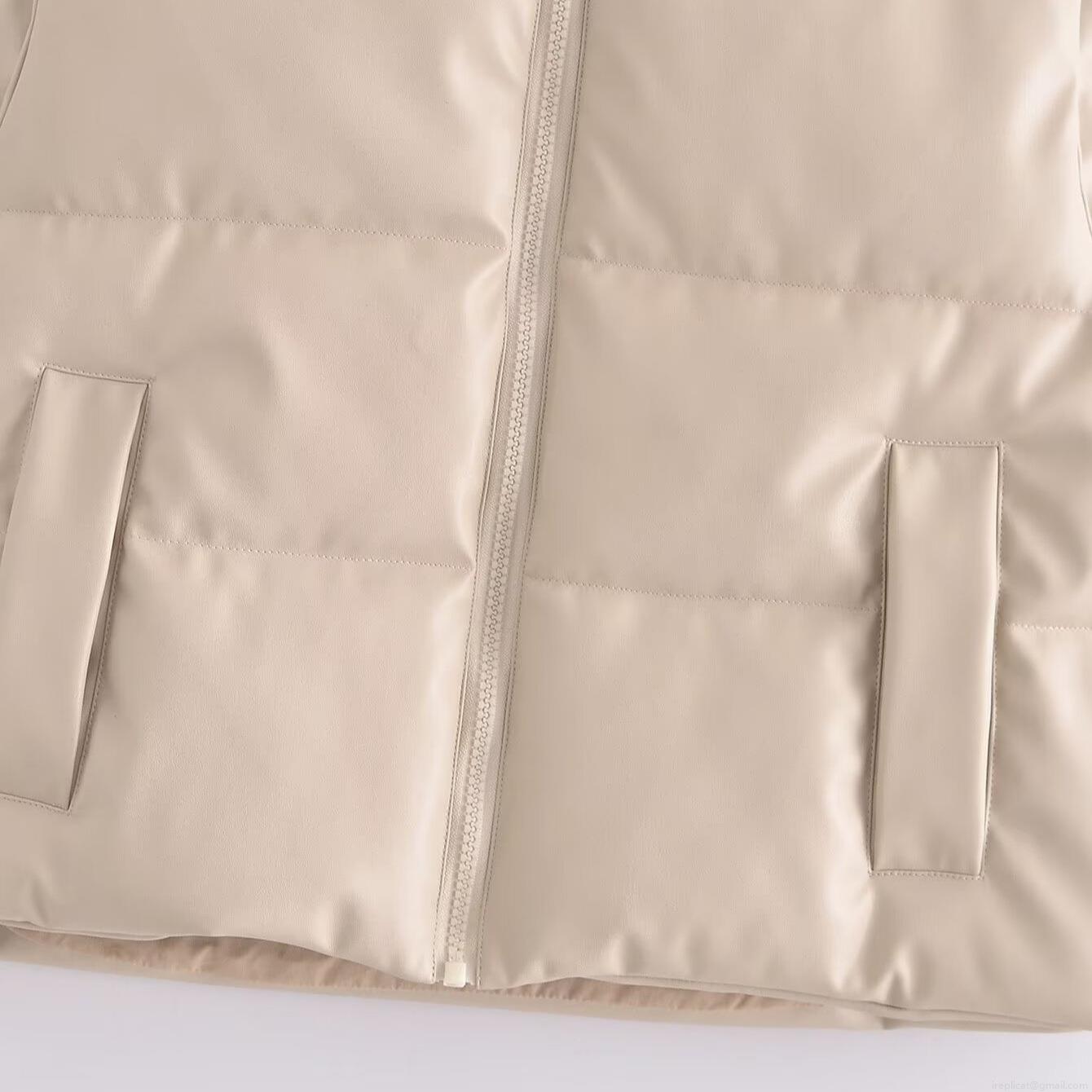 • Women's Fashion PU Leather Padded Vest Casual Stand Collar Quilted Sleeveless Jacket With Pockets Warm Solid Color Autumn Winter Waistcoat For Women Ladies
