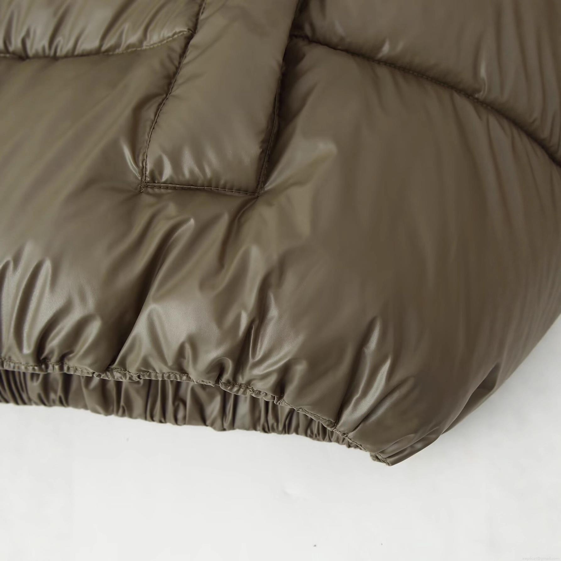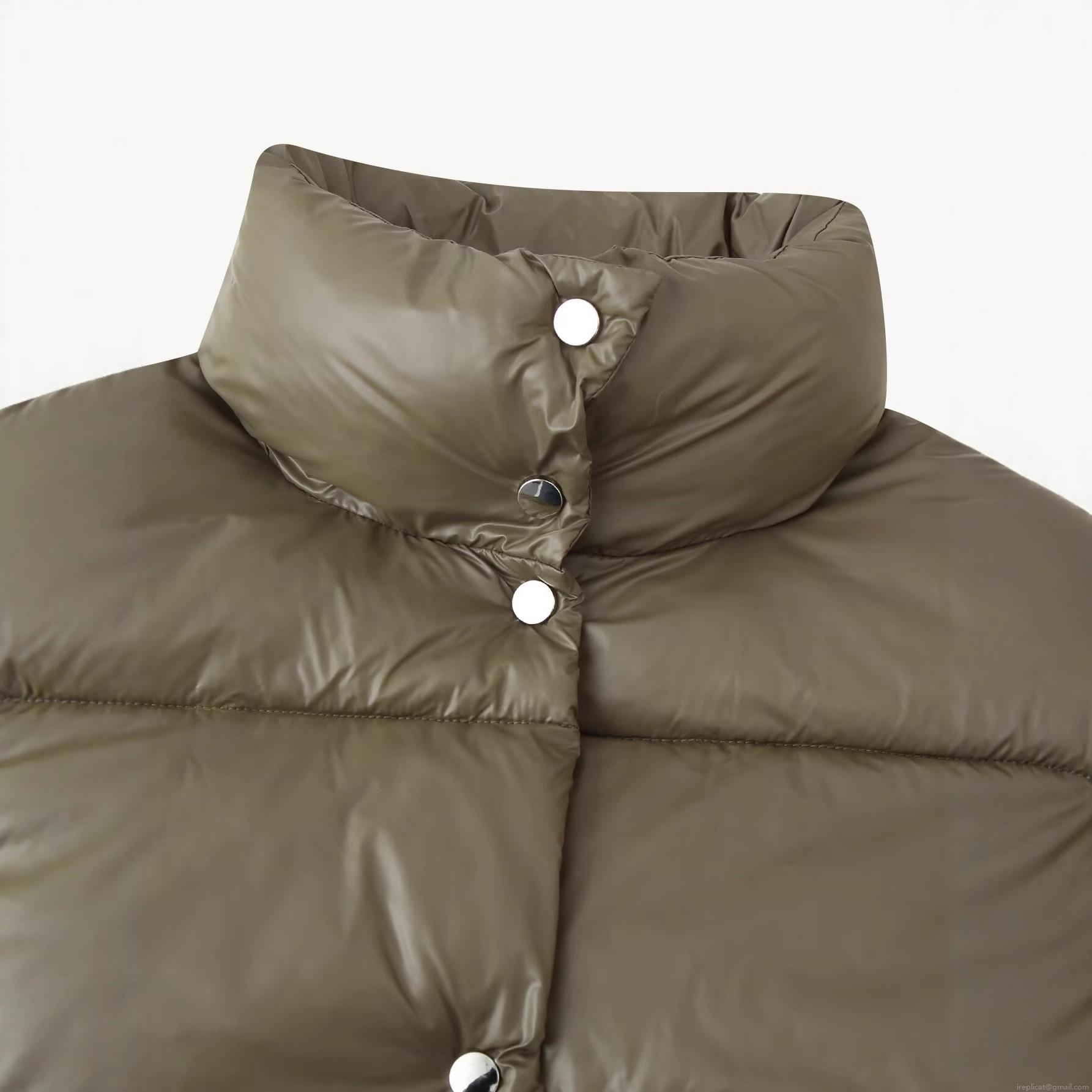 • Women's Fashion Stand Collar Puffer Cotton Jacket Short Button Quilted Coat Windproof Warm Long Sleeve Streetwear Outerwear For Women