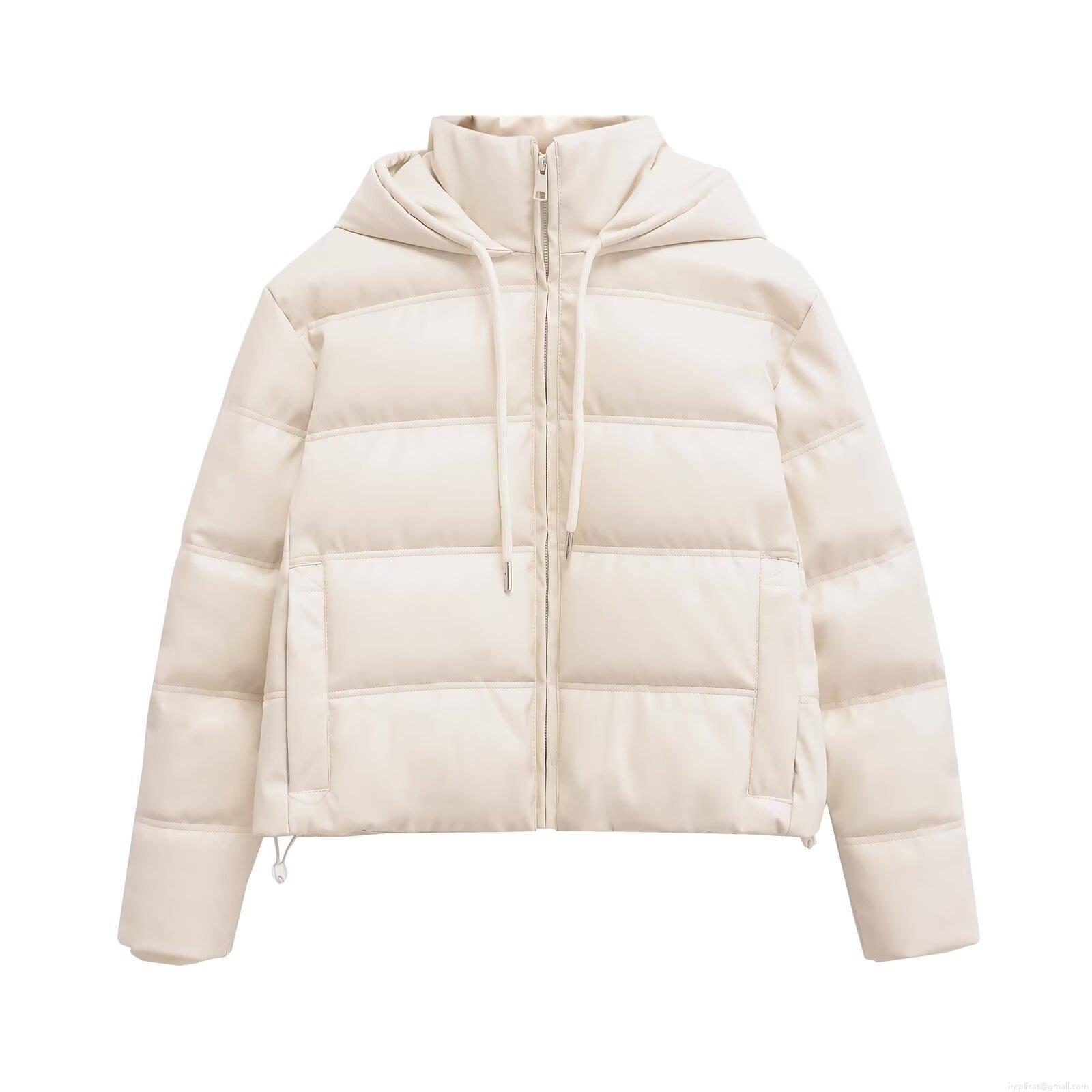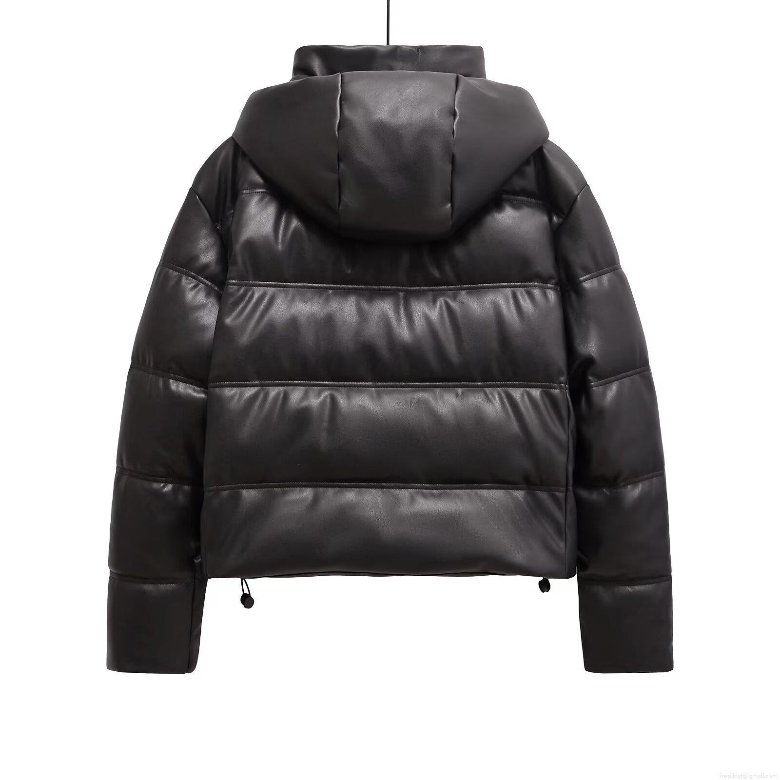 • Women's Faux Leather Quilted Puffer Jacket Hooded Winter Padded Coat Warm Windproof Zip Up Short Outerwear Street Style Lady Fashion Coat