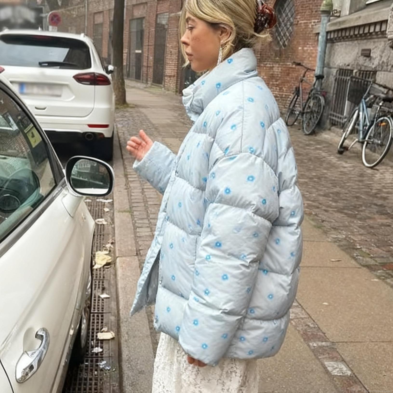 • Women's Floral Hooded Puffer Jacket Vintage Polyester Quilted Padded Coat Long Sleeve Drawstring Warm Outerwear For Winter Daily Casual