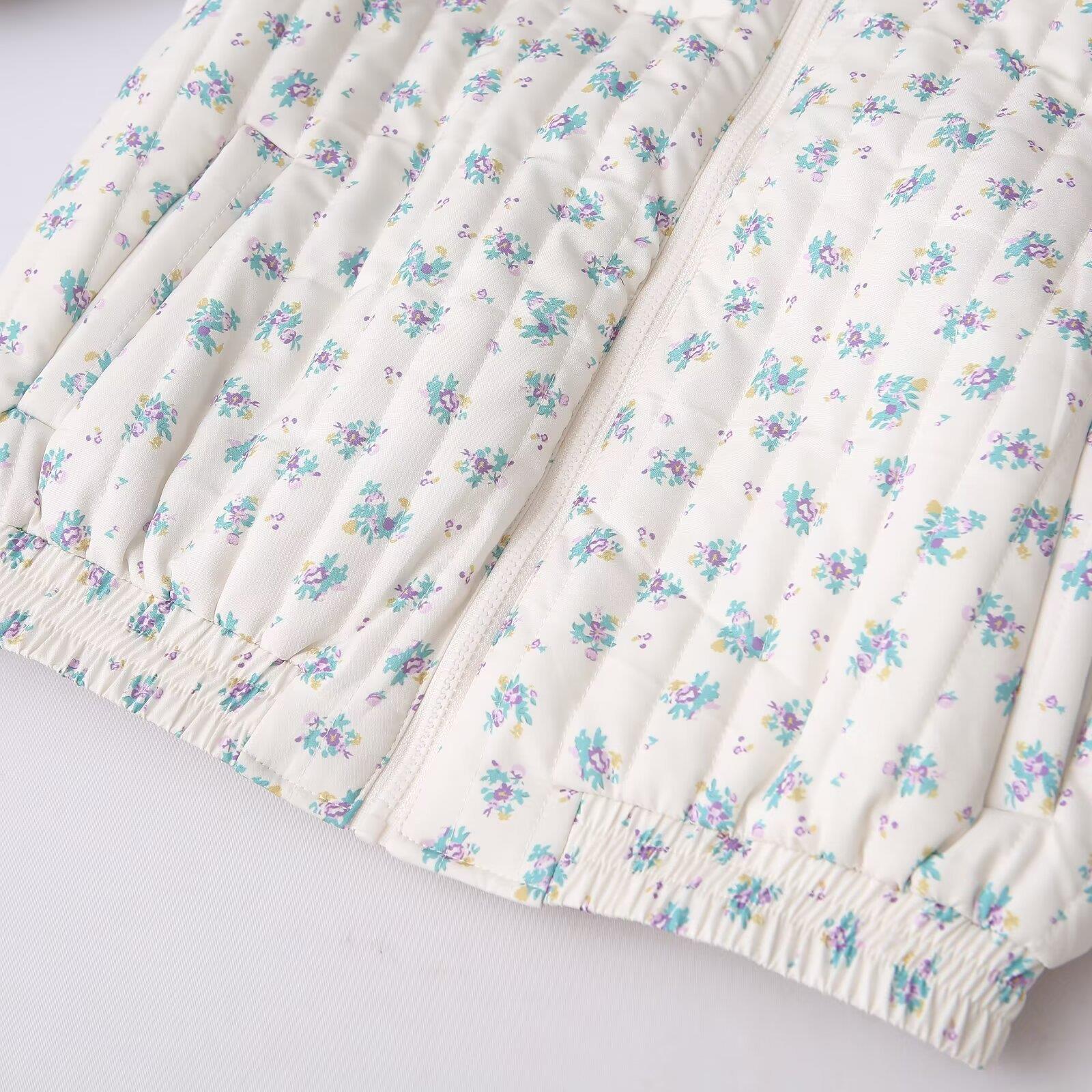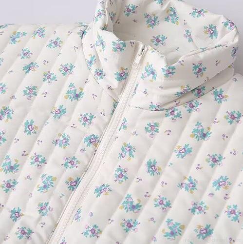 Women's Floral Quilted Jacket Stand Collar Zipper Puffer Coat Winter Warm Outwear Polyester Cotton Blend Floral Print Lightweight Padded Jacket For Women