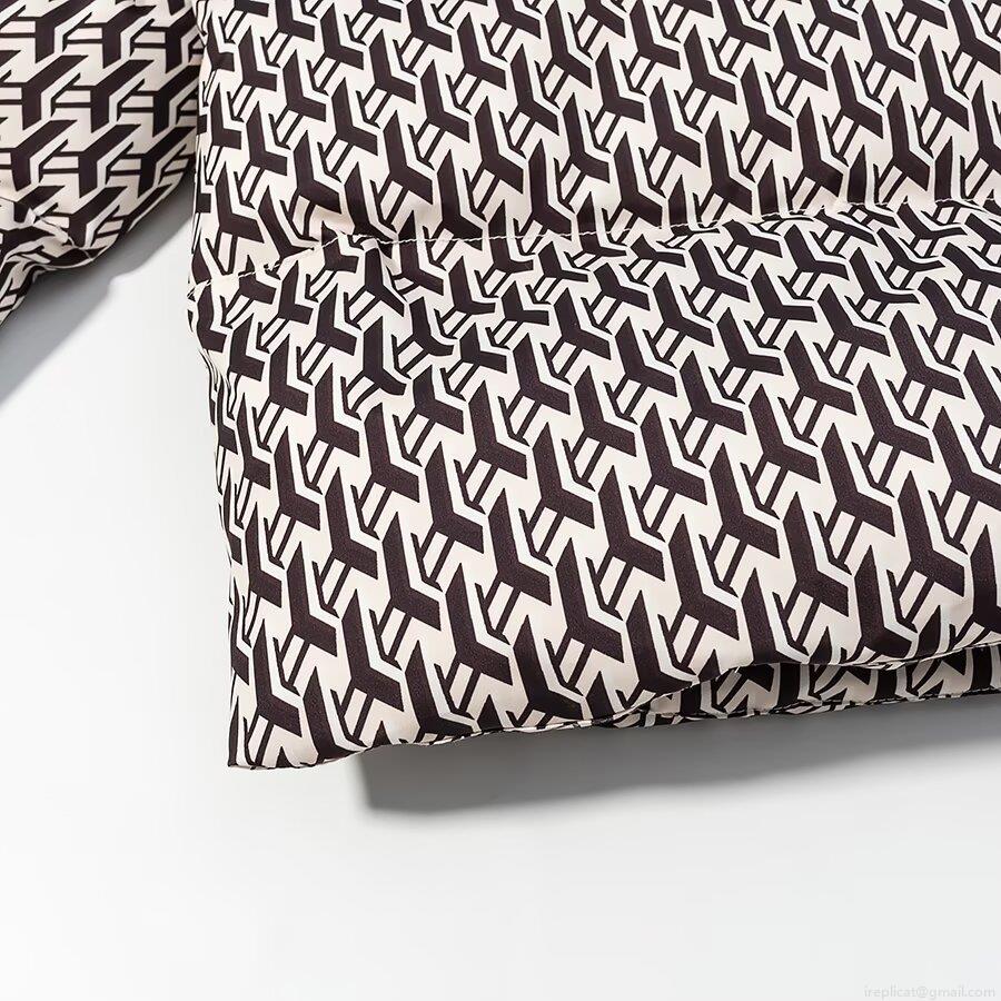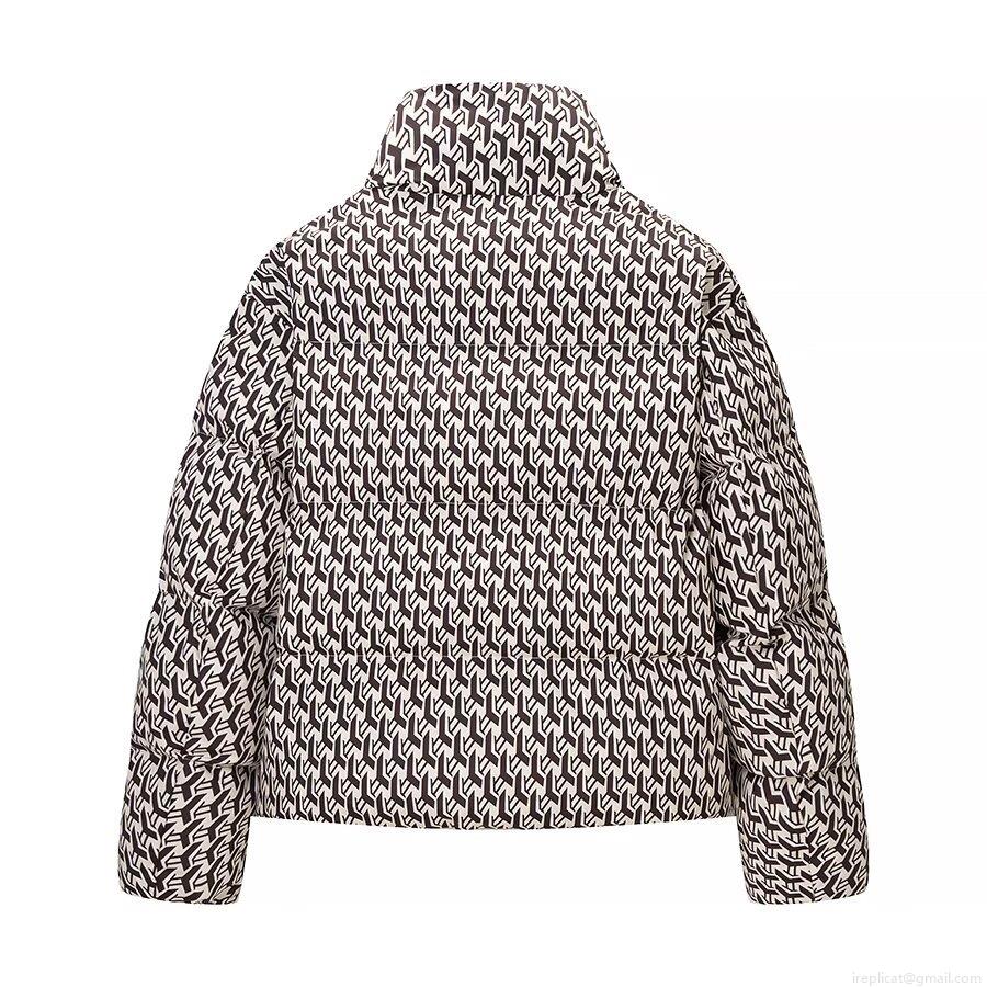 • Women's Geometric Monogram Printed Puffer Jacket Stand Collar Loose Fit Winter Warm Padded Coat With Pockets Casual Chic Outerwear