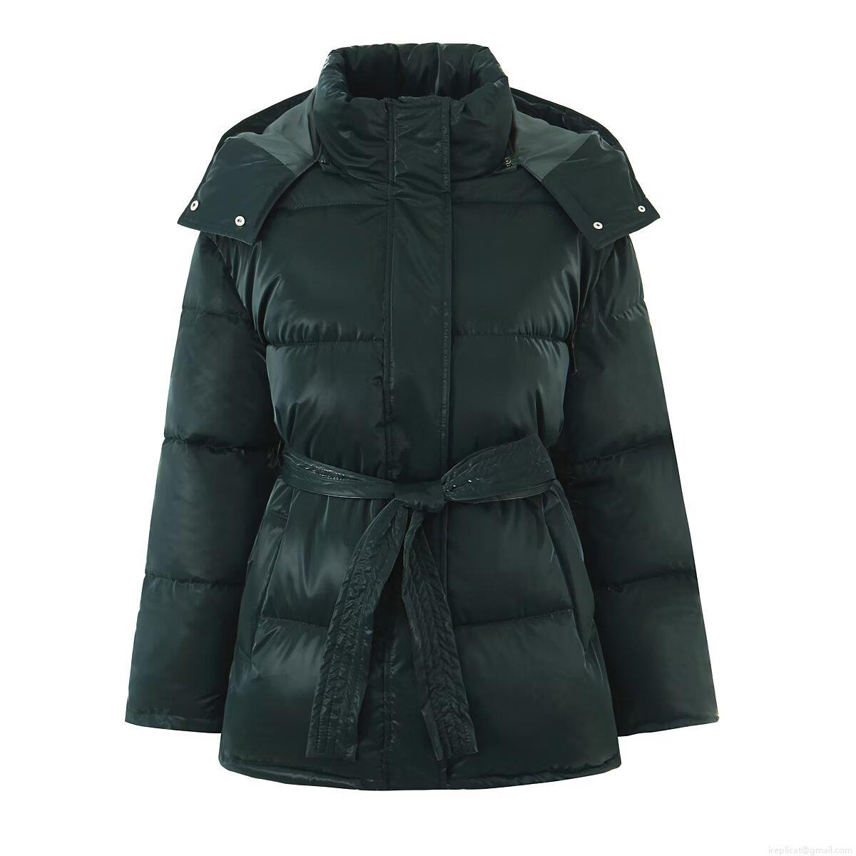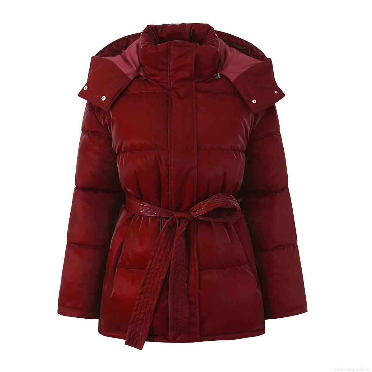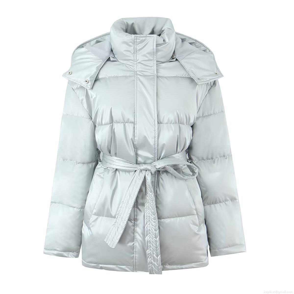 • Women's Glossy Puffer Jacket Hooded Mid-Long Padded Cotton Coat With Waist Tie Winter Warm Windproof Outerwear Fashion Streetwear Ladies Padded Jacket