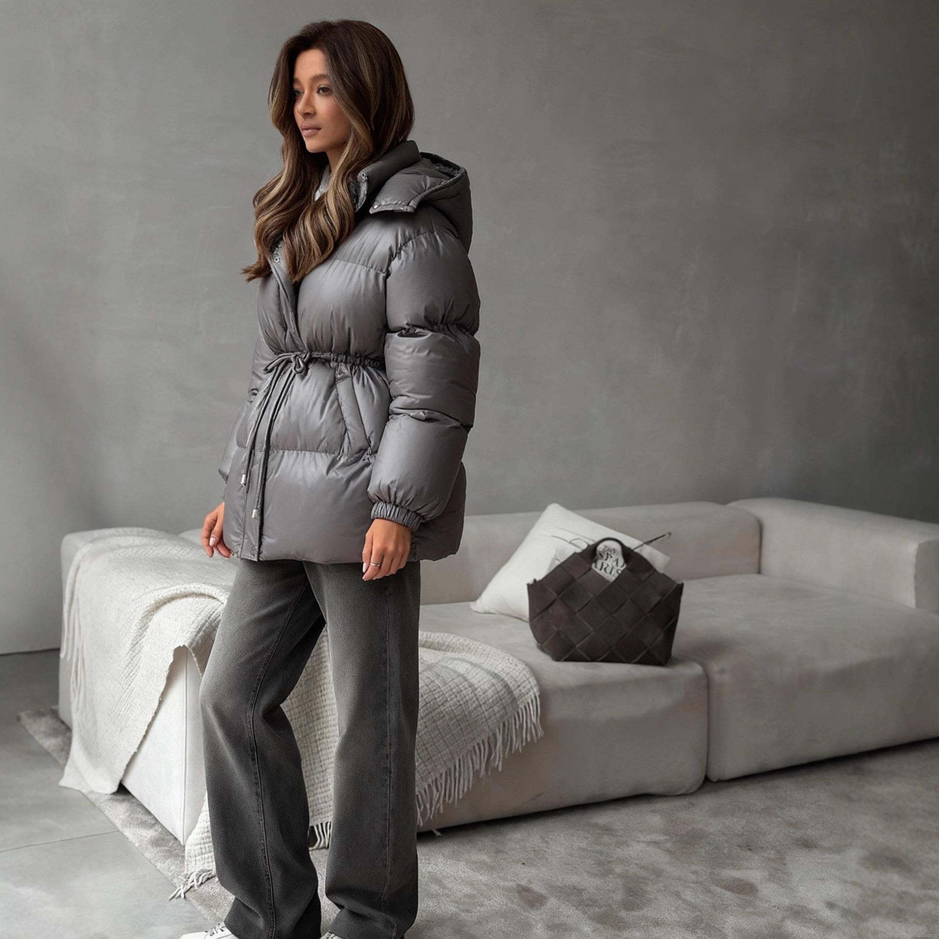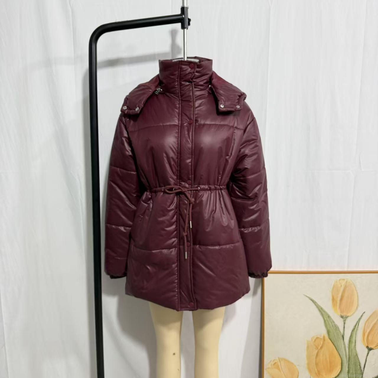 • Women's Hooded Padded Jacket Cotton Blend Drawstring Waist Warm Quilted Coat Casual Outerwear For Autumn Winter