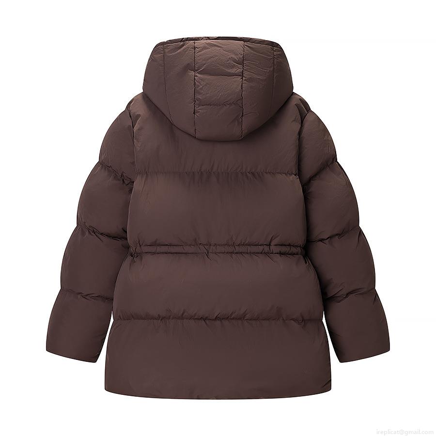 • Women's Hooded Padded Jacket Windproof Mid-length Drawstring Waist Quilted Padded Coat Solid Color Long Sleeve Warm Outwear For Women