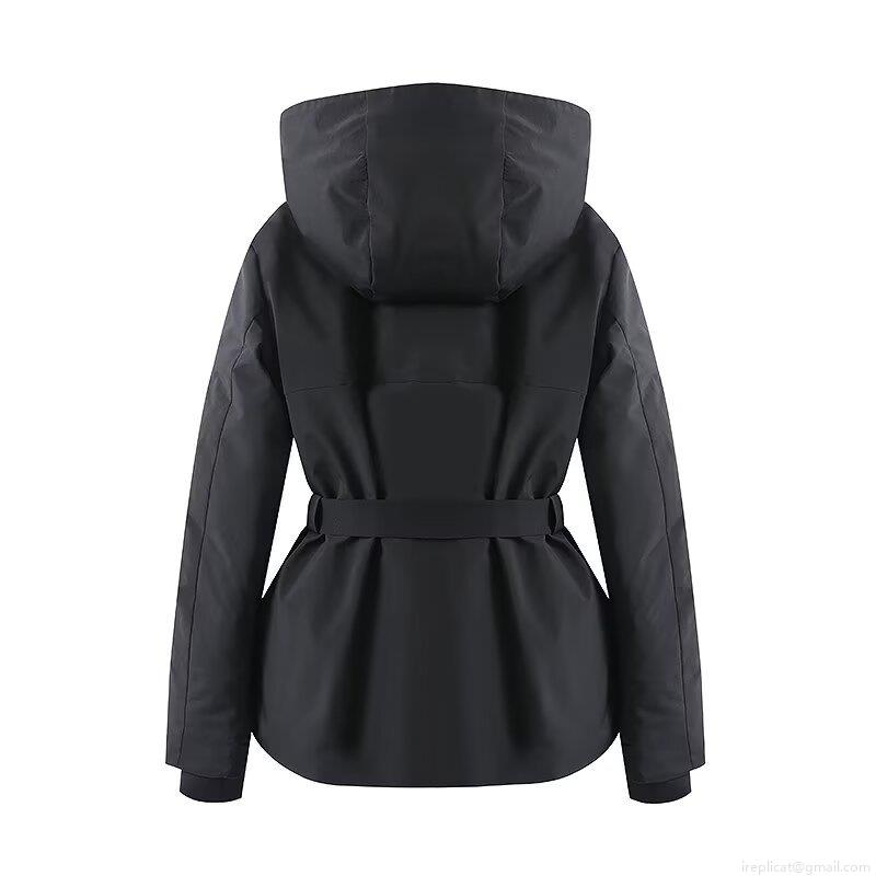 • Women's Hooded Padded Jacket With Belt Polyester Shell Silk-like Cotton Filling Slim Fit Warm Windproof Winter Coat For Outdoor Ski Casual Wear