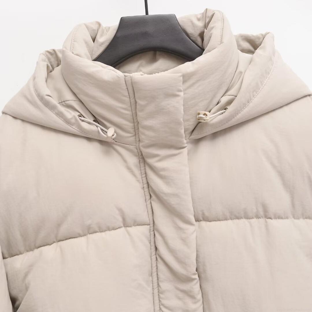 • Women's Hooded Puffer Jacket Polyester Fabric Polyester Cotton Filling Winter Warm Quilted Outerwear Casual Long Sleeve Coat Solid Color For Cold Weather Fashion