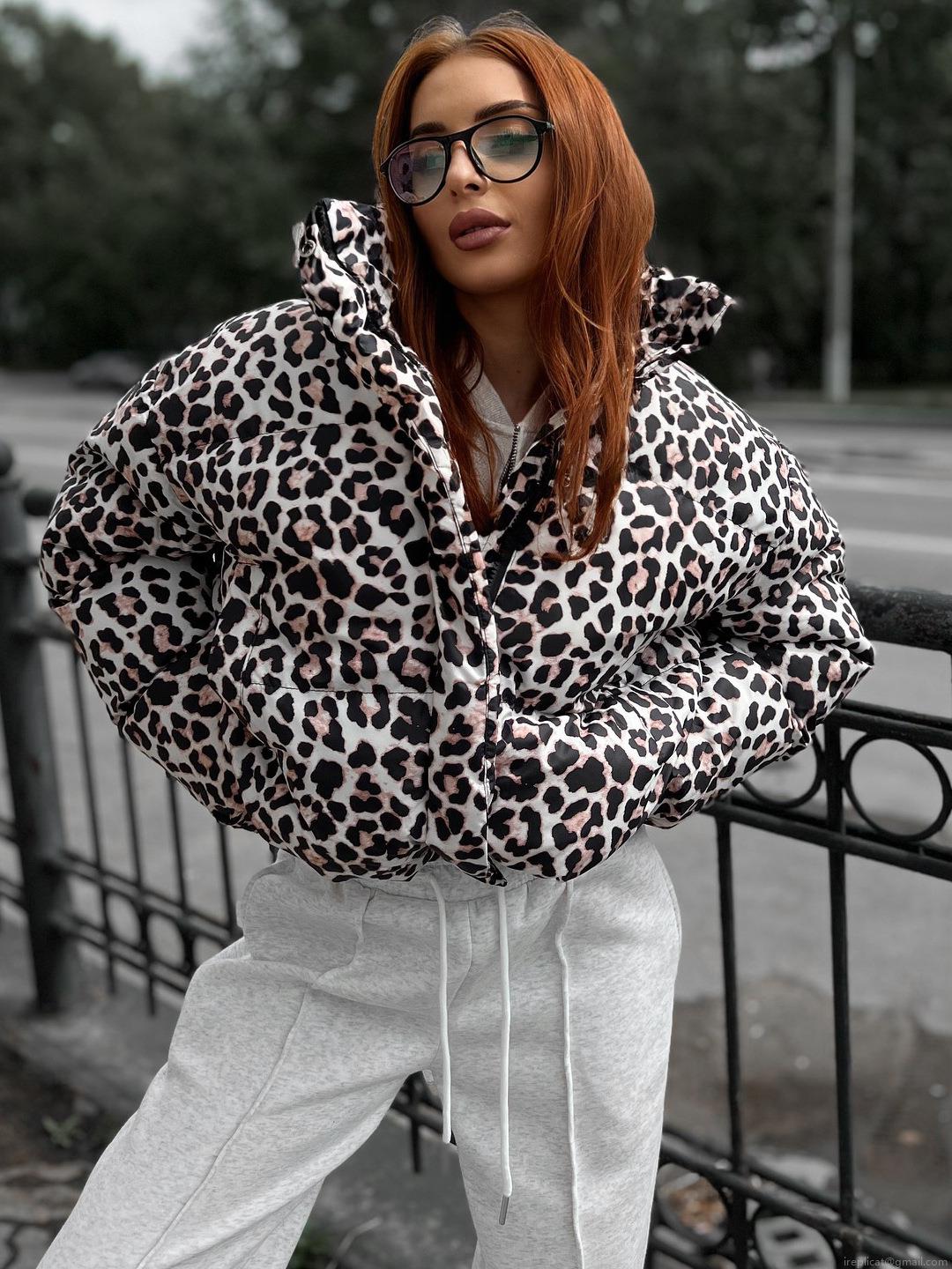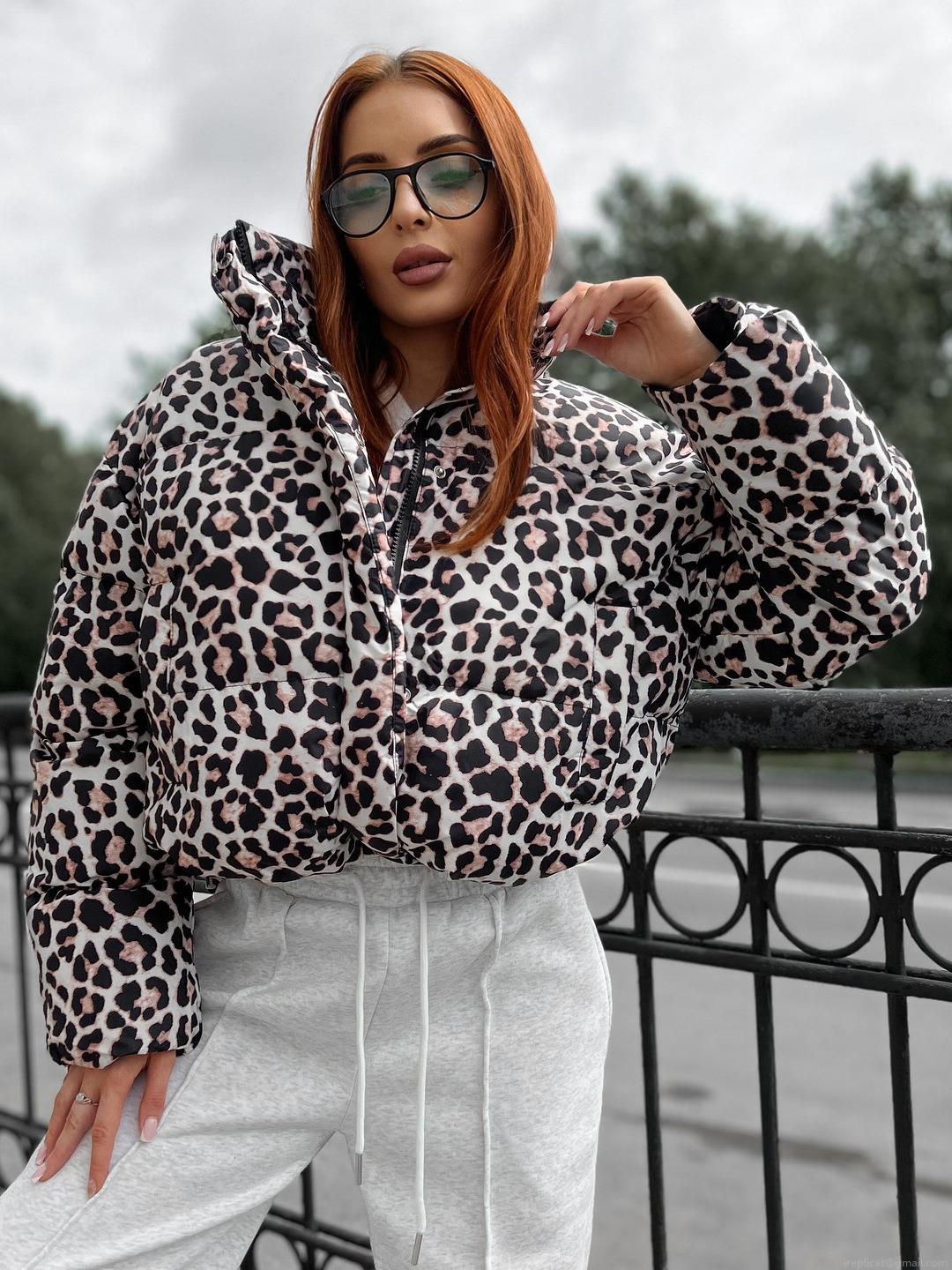 • Women's Leopard Print Puffer Jacket Fashion Short Cotton Padded Coat Thick Warm Stand Collar Zip Up Loose Streetwear Outerwear For Winter