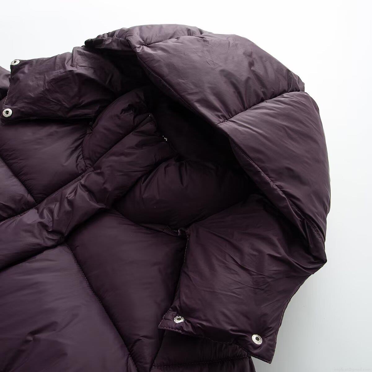 • Women's Loose Casual Hooded Puffer Jacket Solid Color Long Sleeve Padded Coat Warm Polyester Quilted Outerwear With Zipper Pocket For Autumn Winter Lady