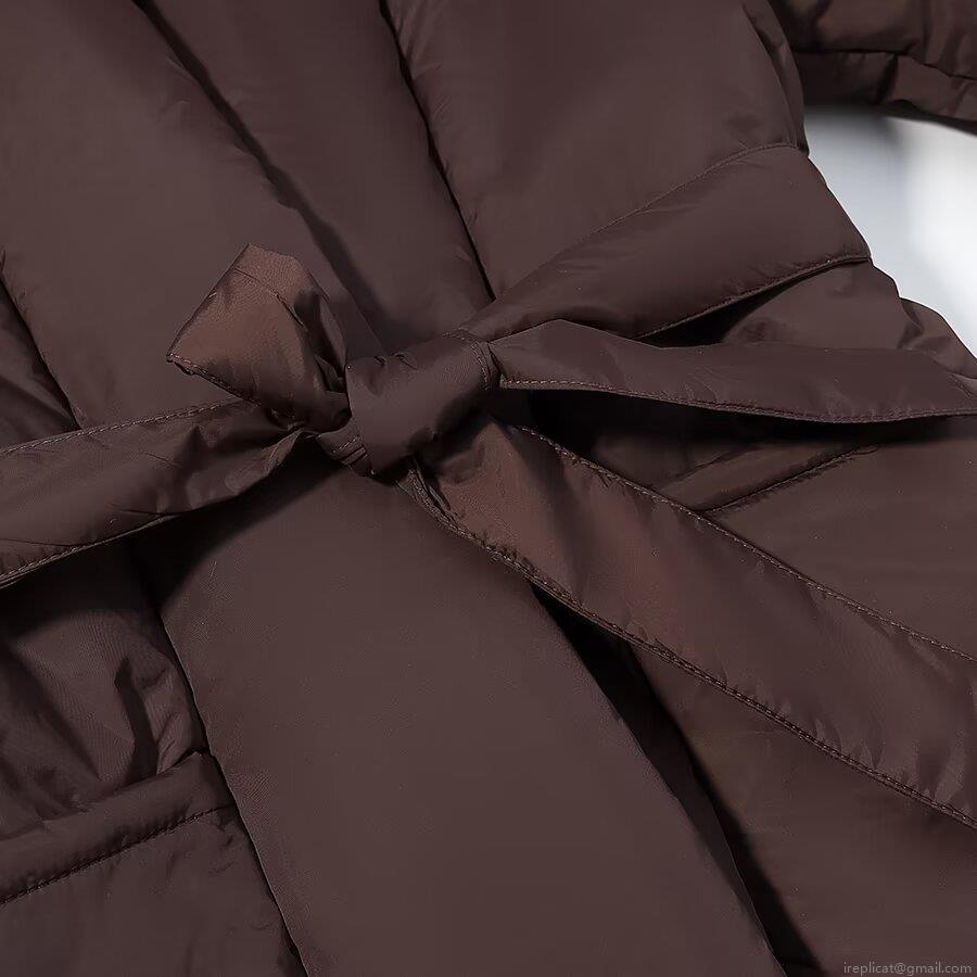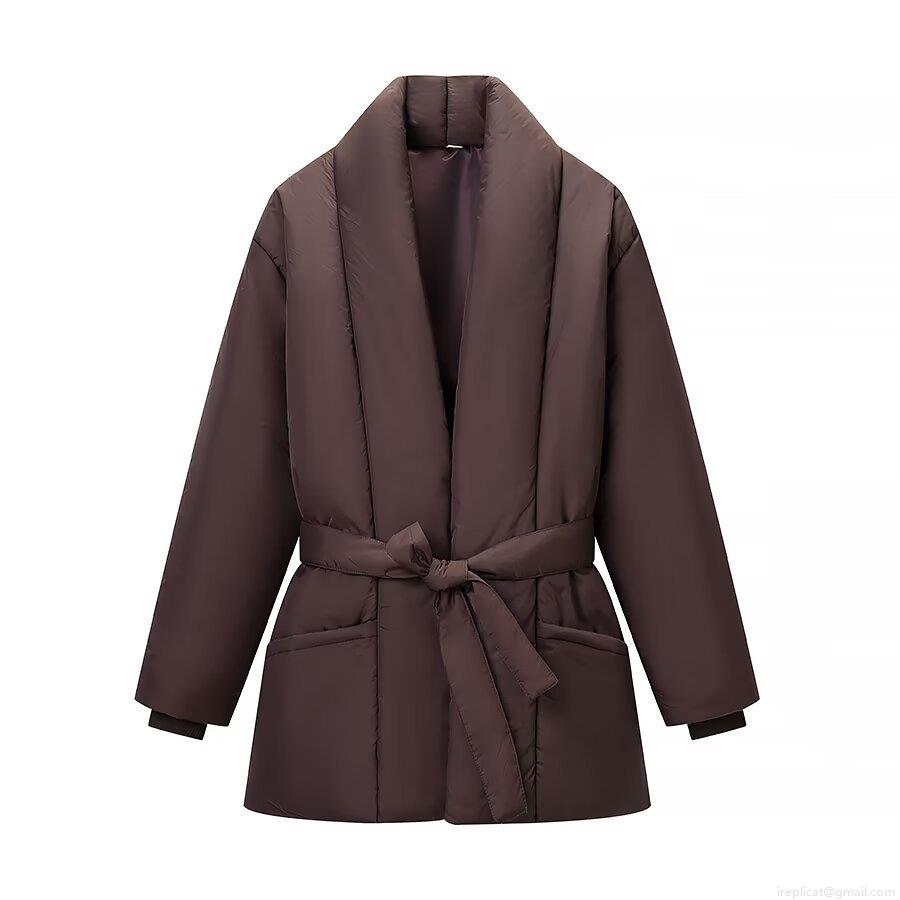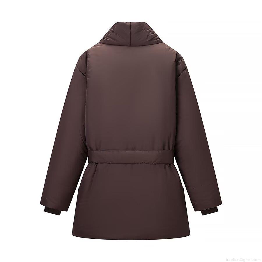 • Women's Loose Fit V-Neck Puffer Jacket Solid Color Belted Warm Winter Coat Casual Mid-Length Polyester Quilted Outerwear With Large Pockets Deep Brown