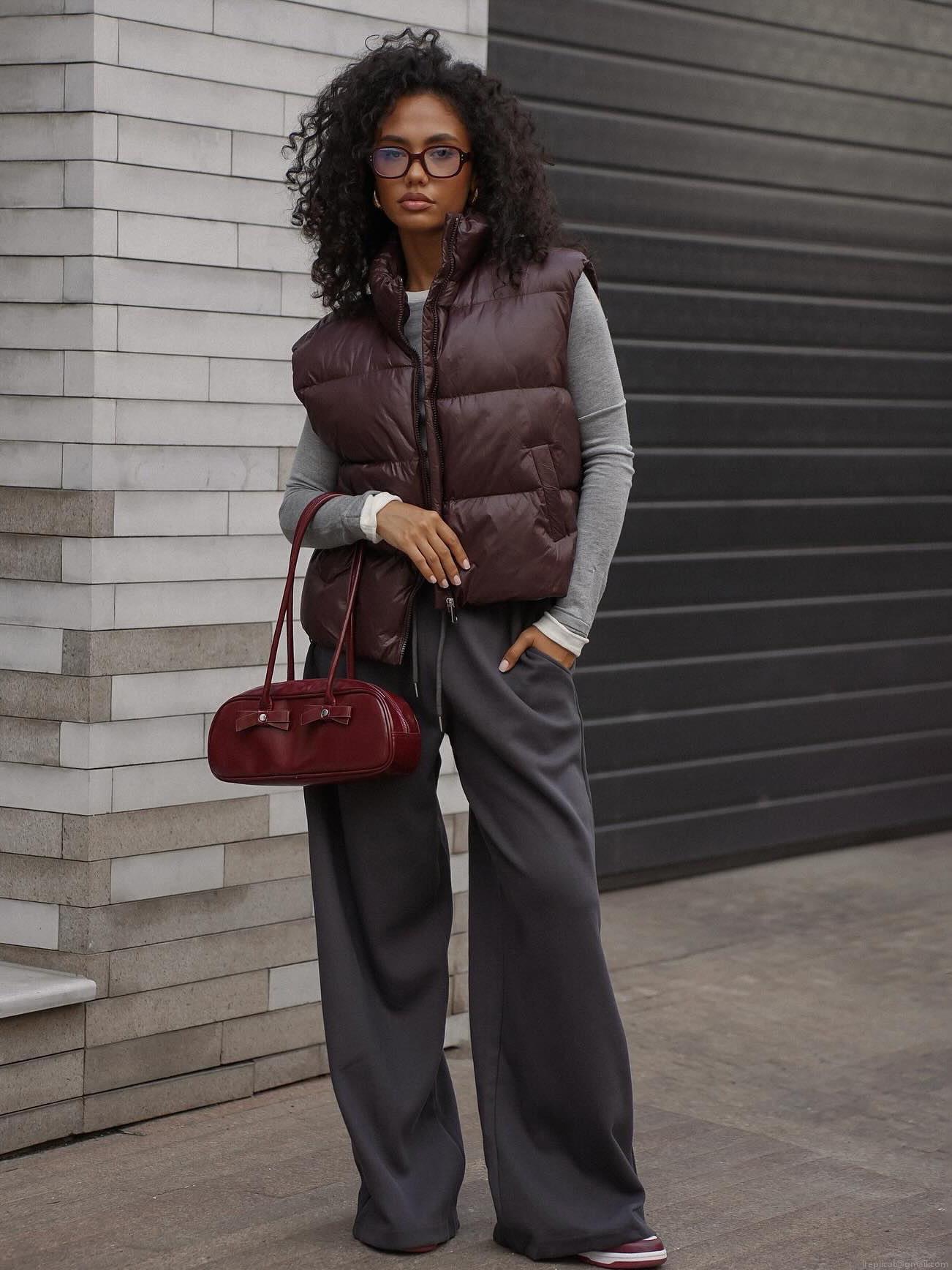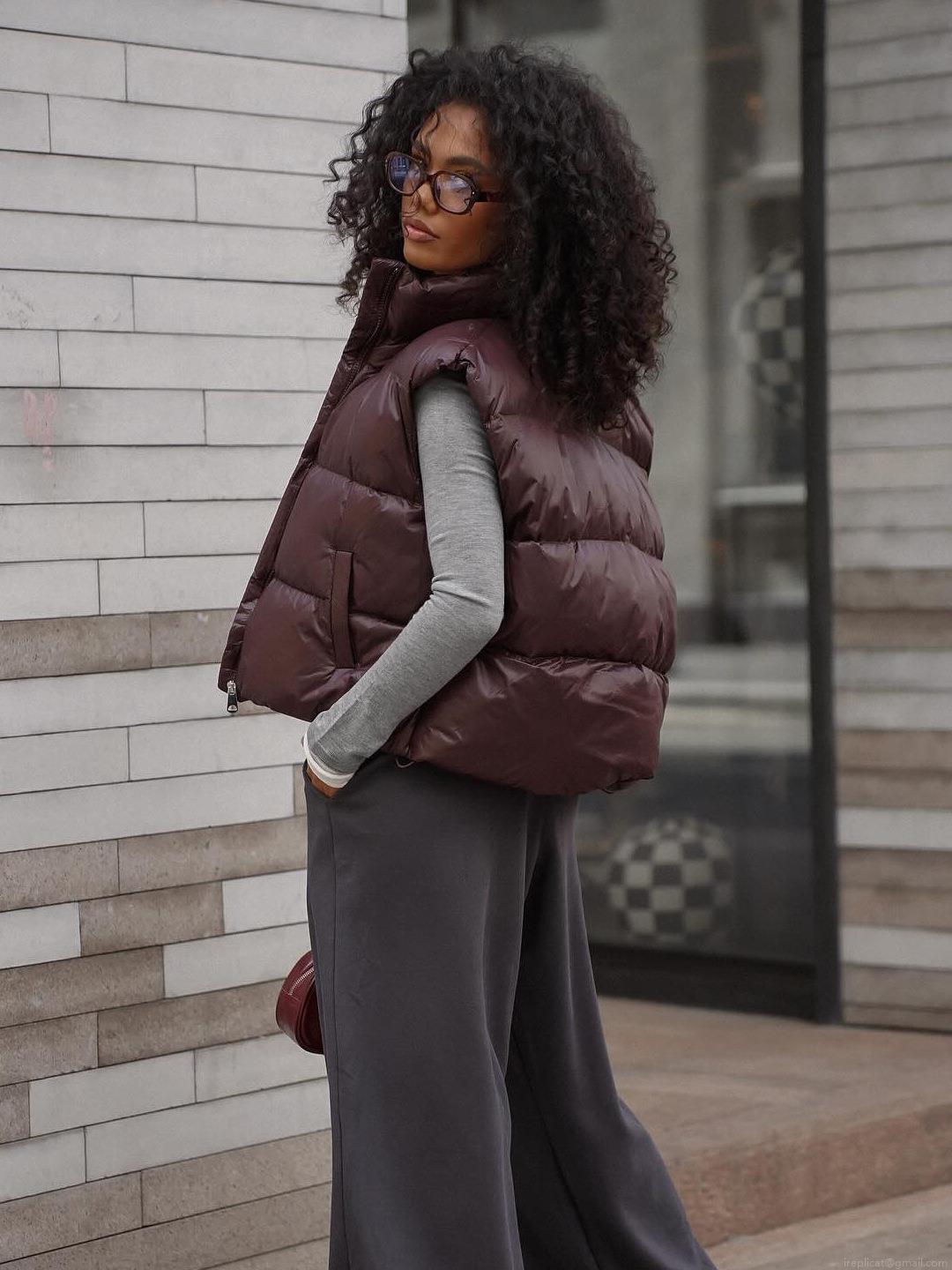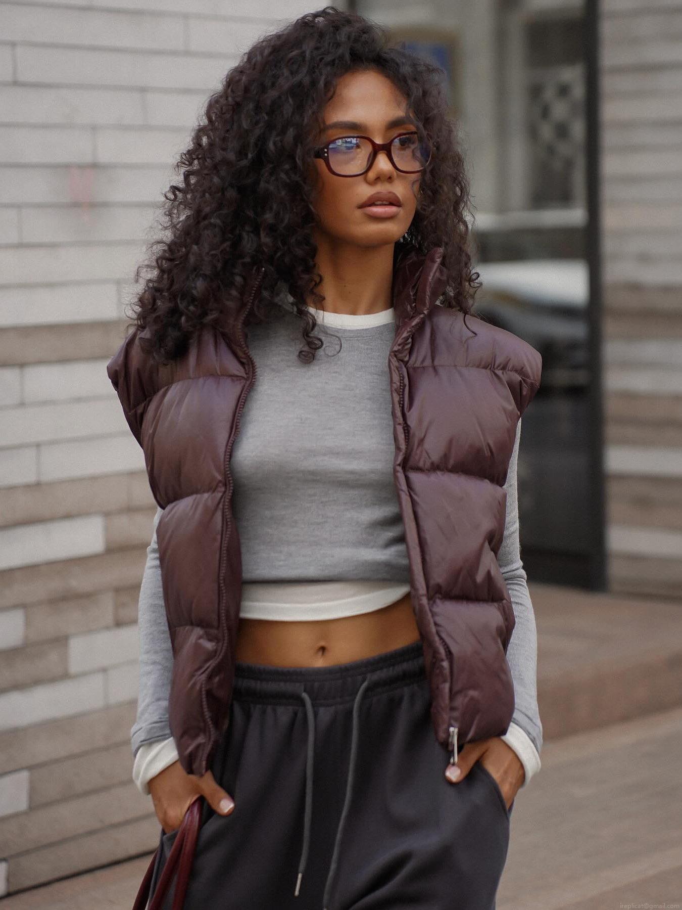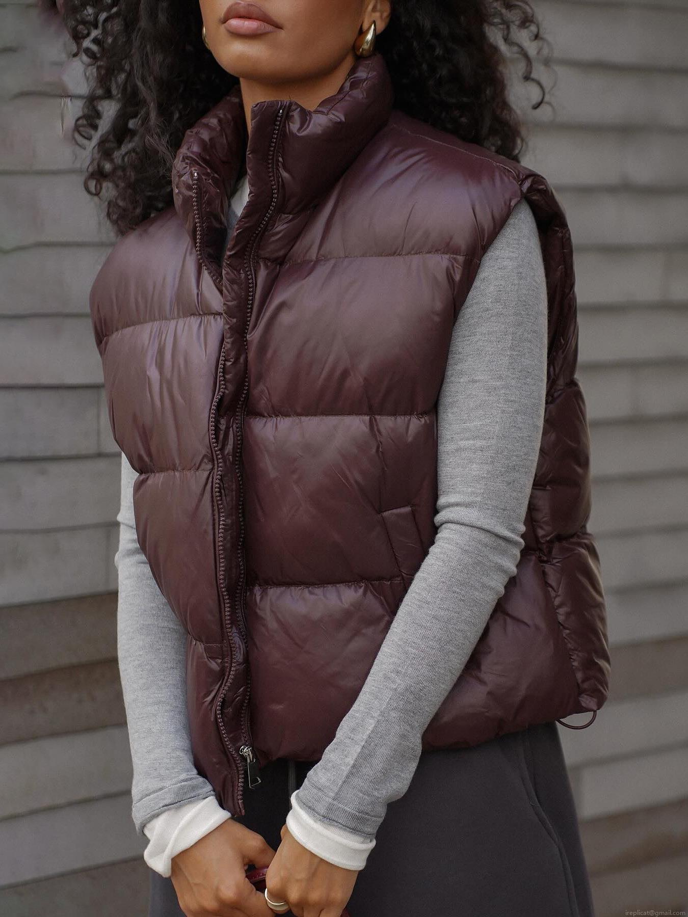 • Women's Loose High Collar Padded Vest Solid Color Polyester Cotton Quilted Sleeveless Puffer Jacket Warm Autumn Winter Outerwear Waistcoat